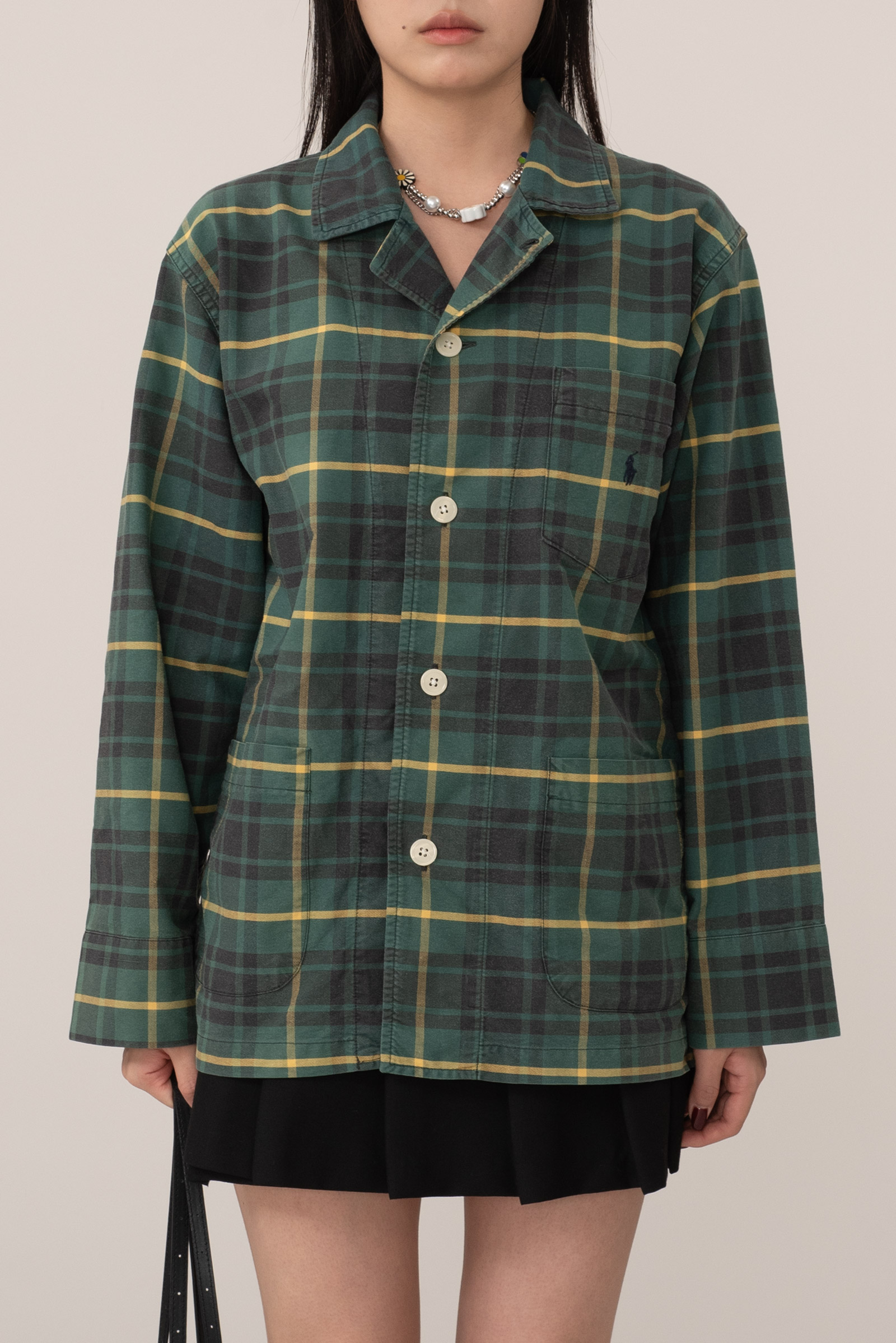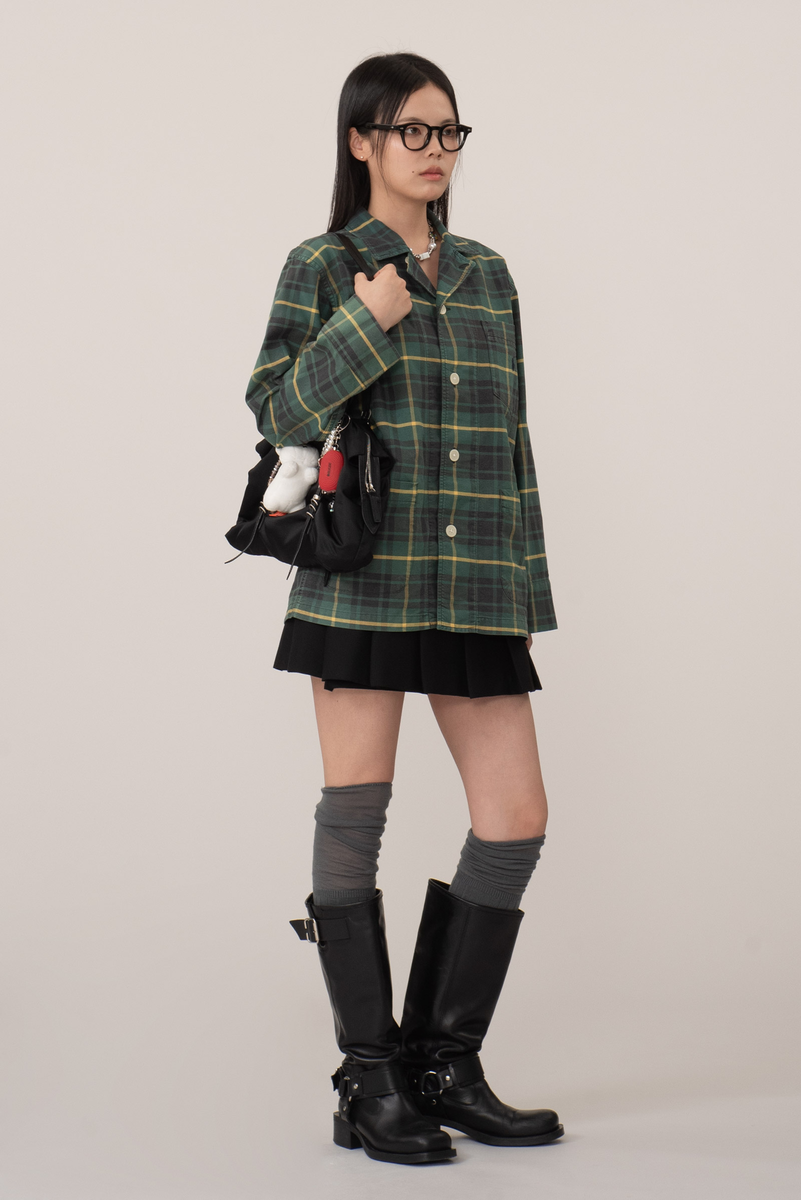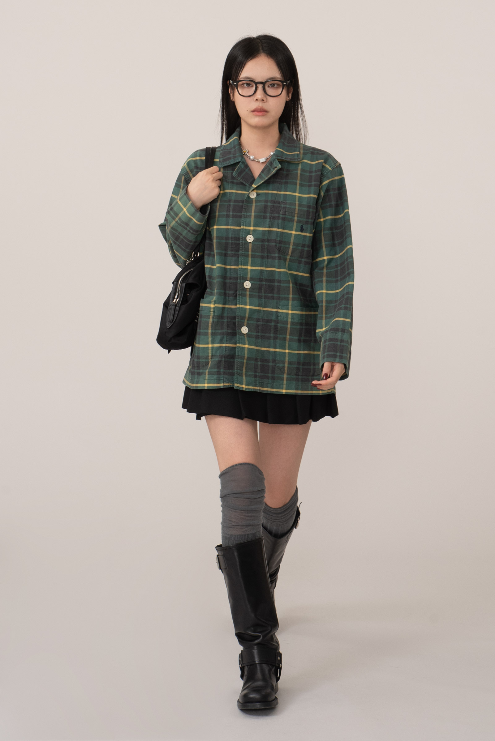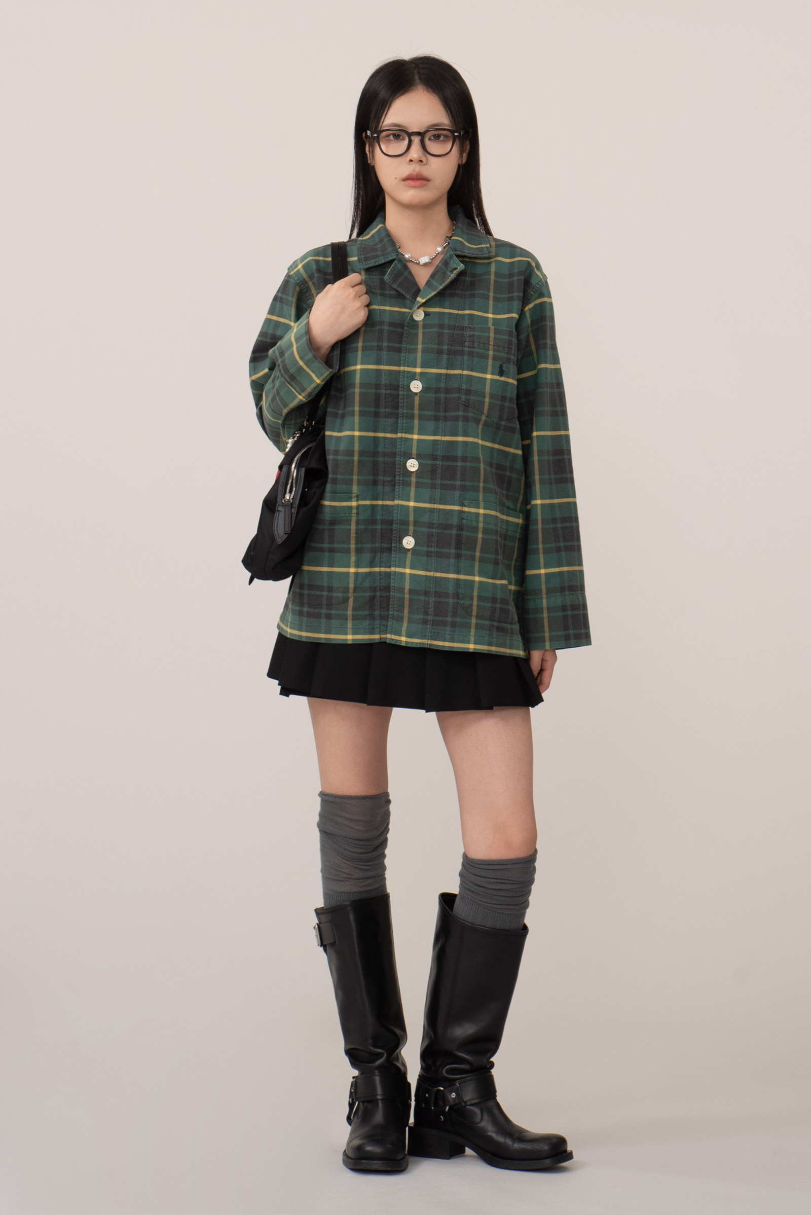 탄탄하게 짜여진 코튼 원단 위에 타탄 체크 패턴이 돋보이고 표면은 매트하고 부드럽게 떨어지는 피스인데요.