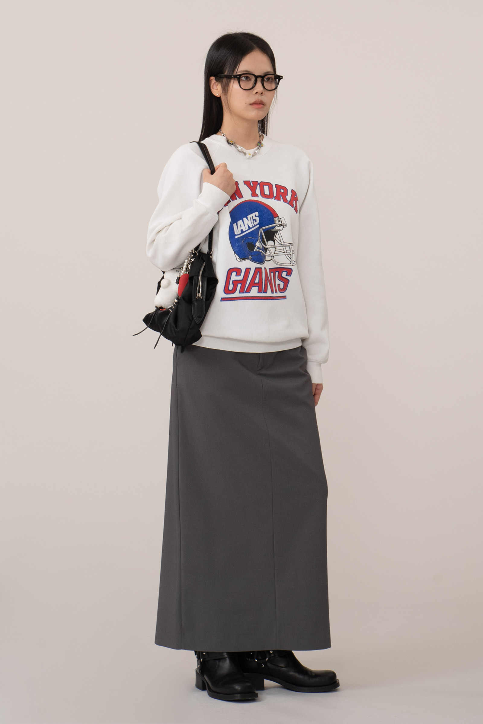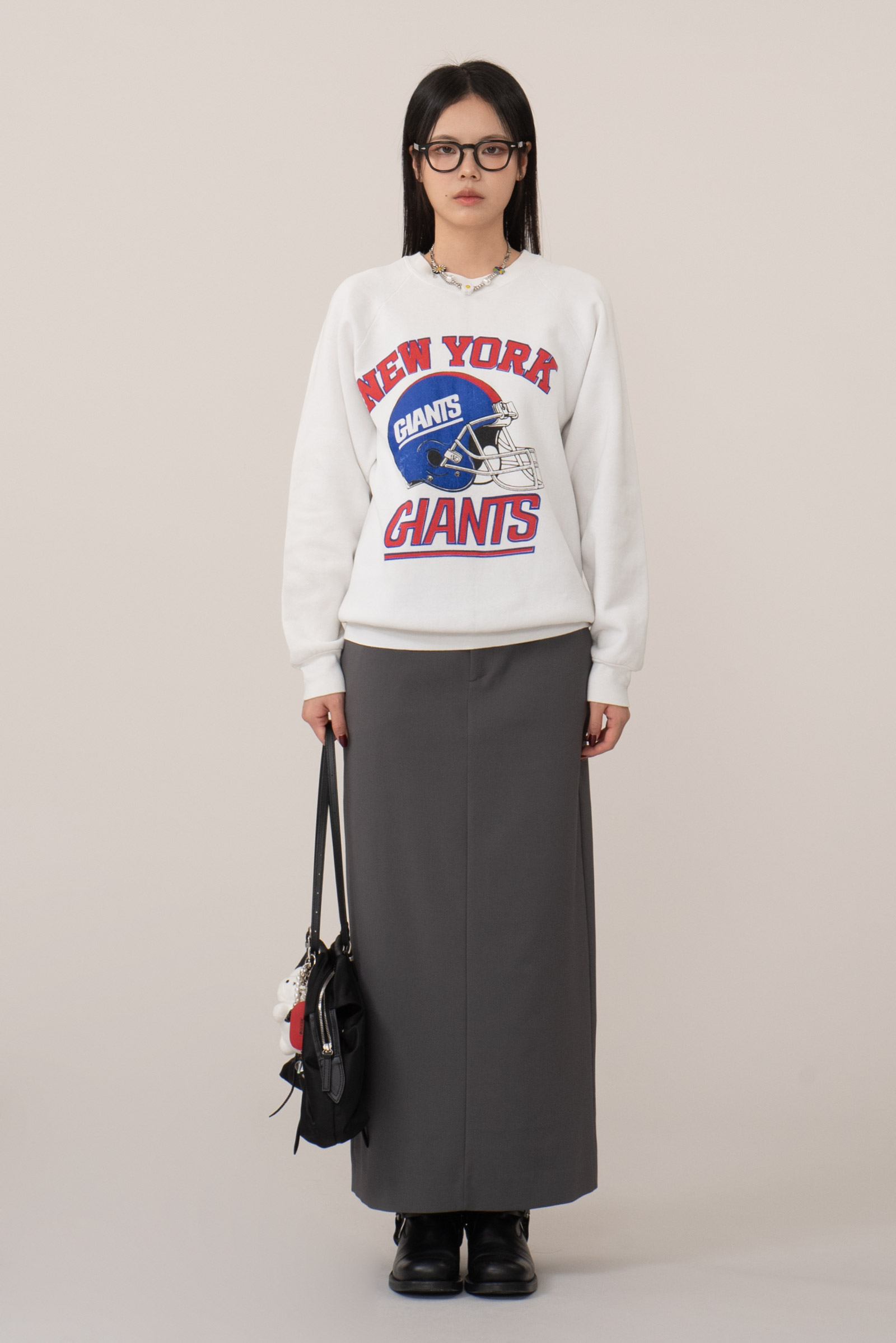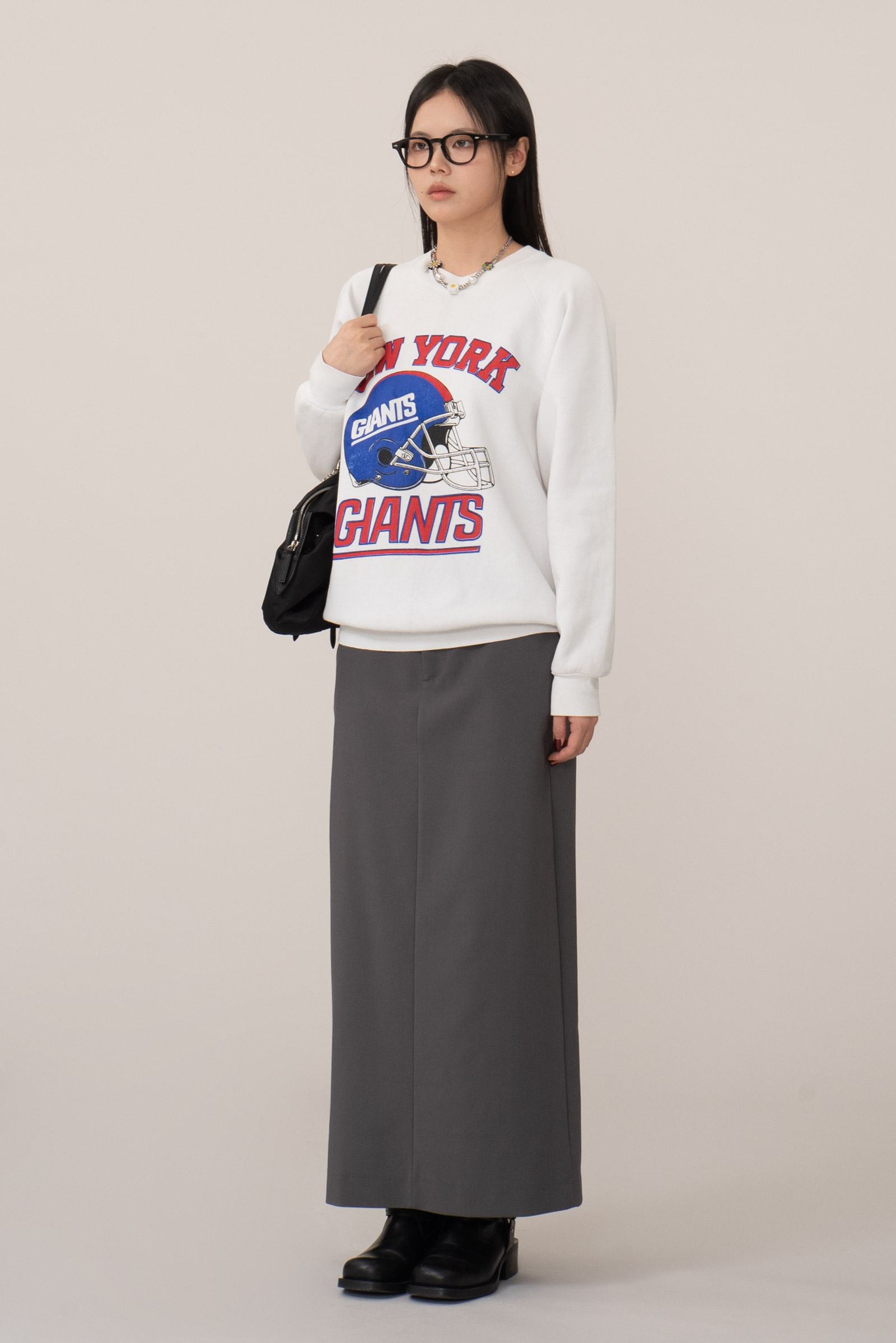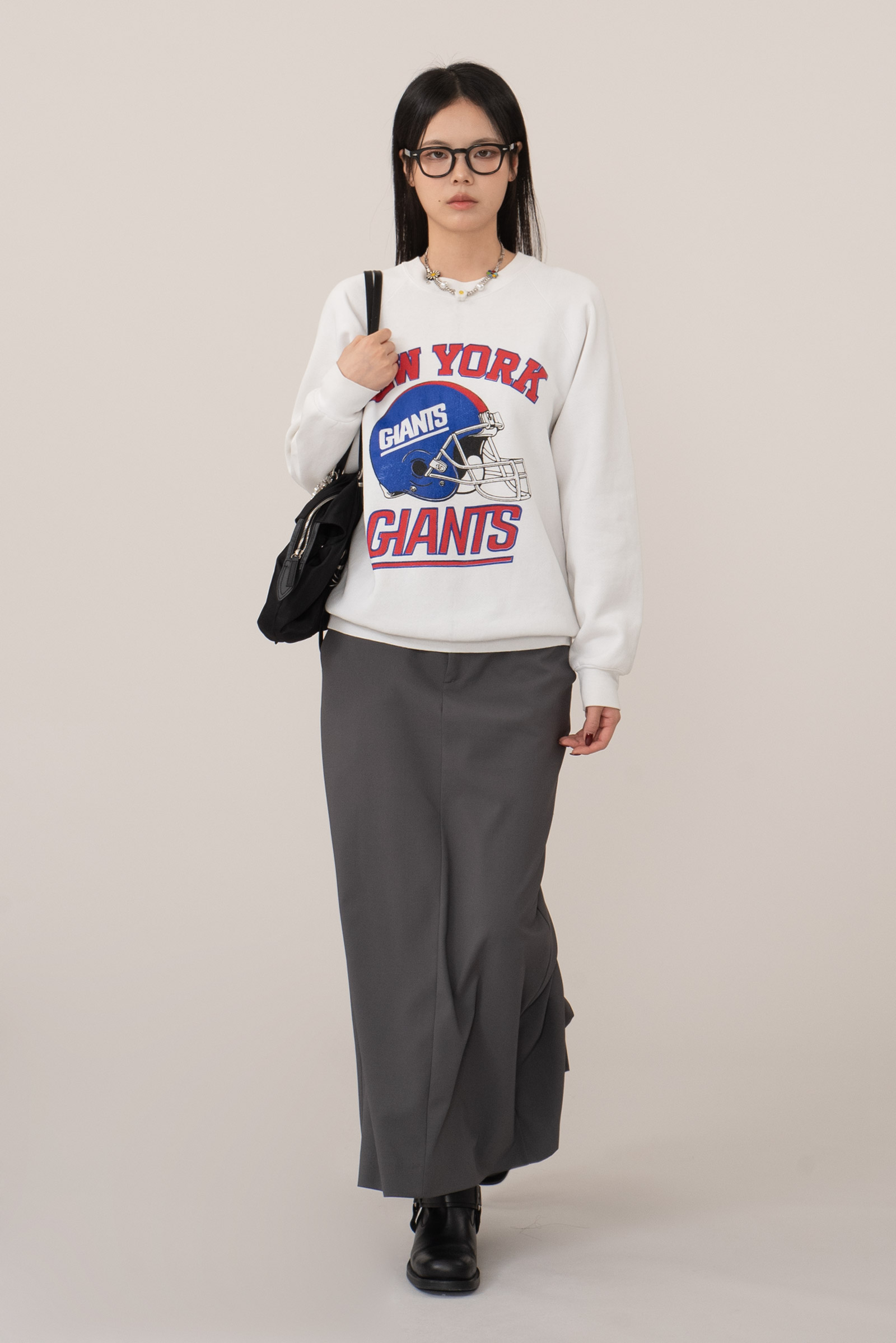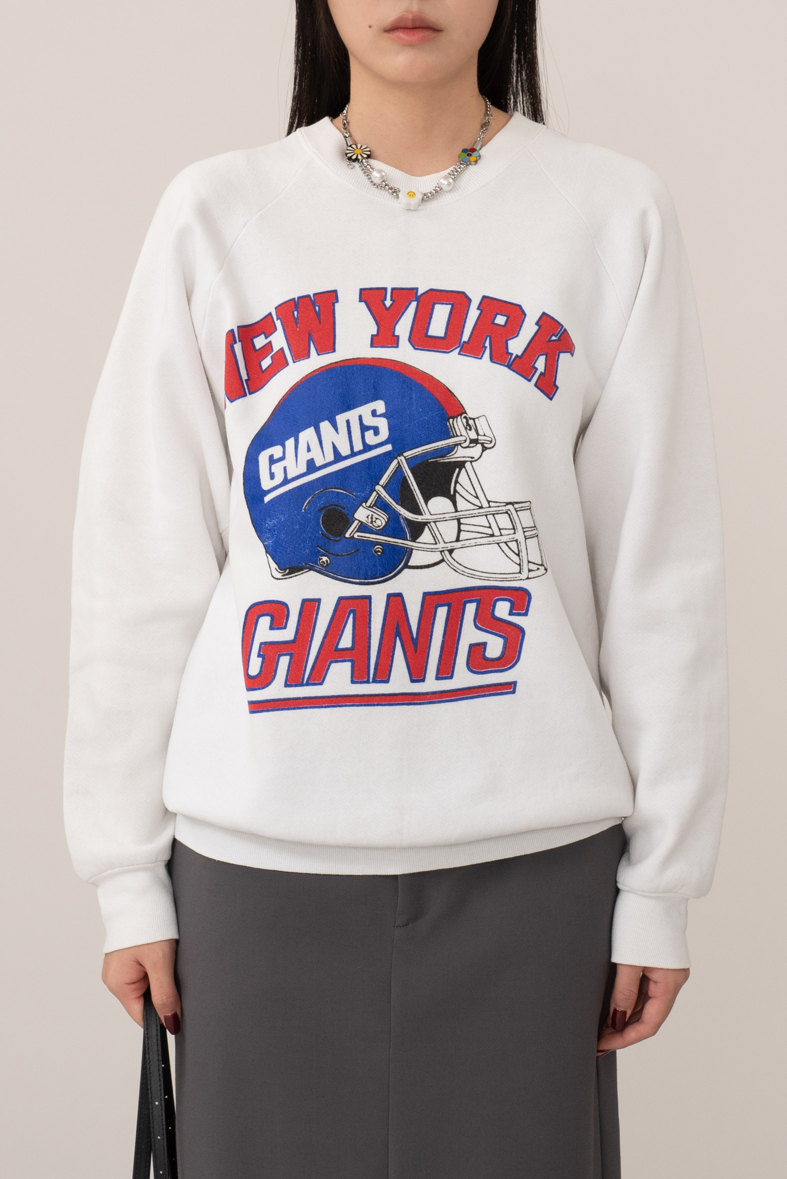 어깨선이 자연스럽게 떨어지는 레글런 슬리브, 안정적인 형태 유지, 전면 대형 그래픽은 90년대 당시 빈티지 스타일을 잘 드러내는 요소랍니다.