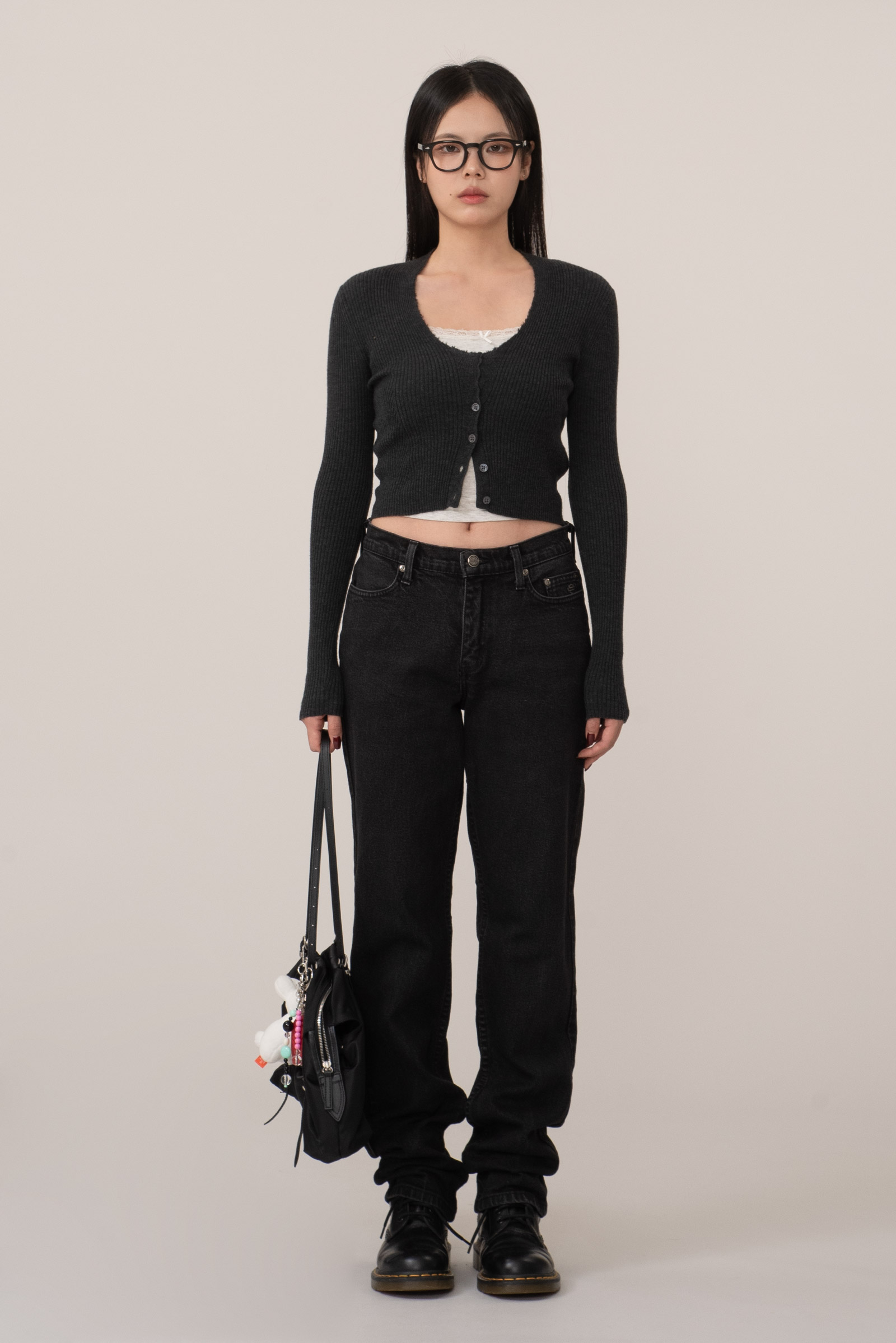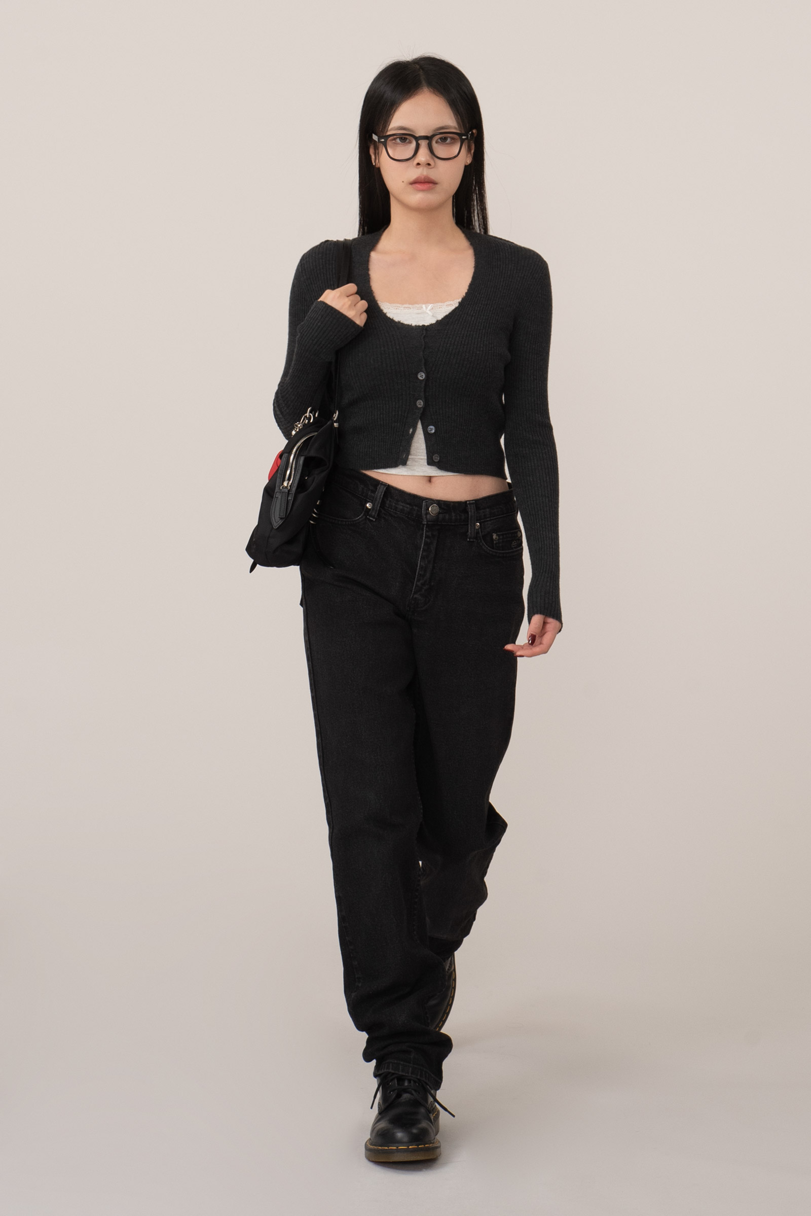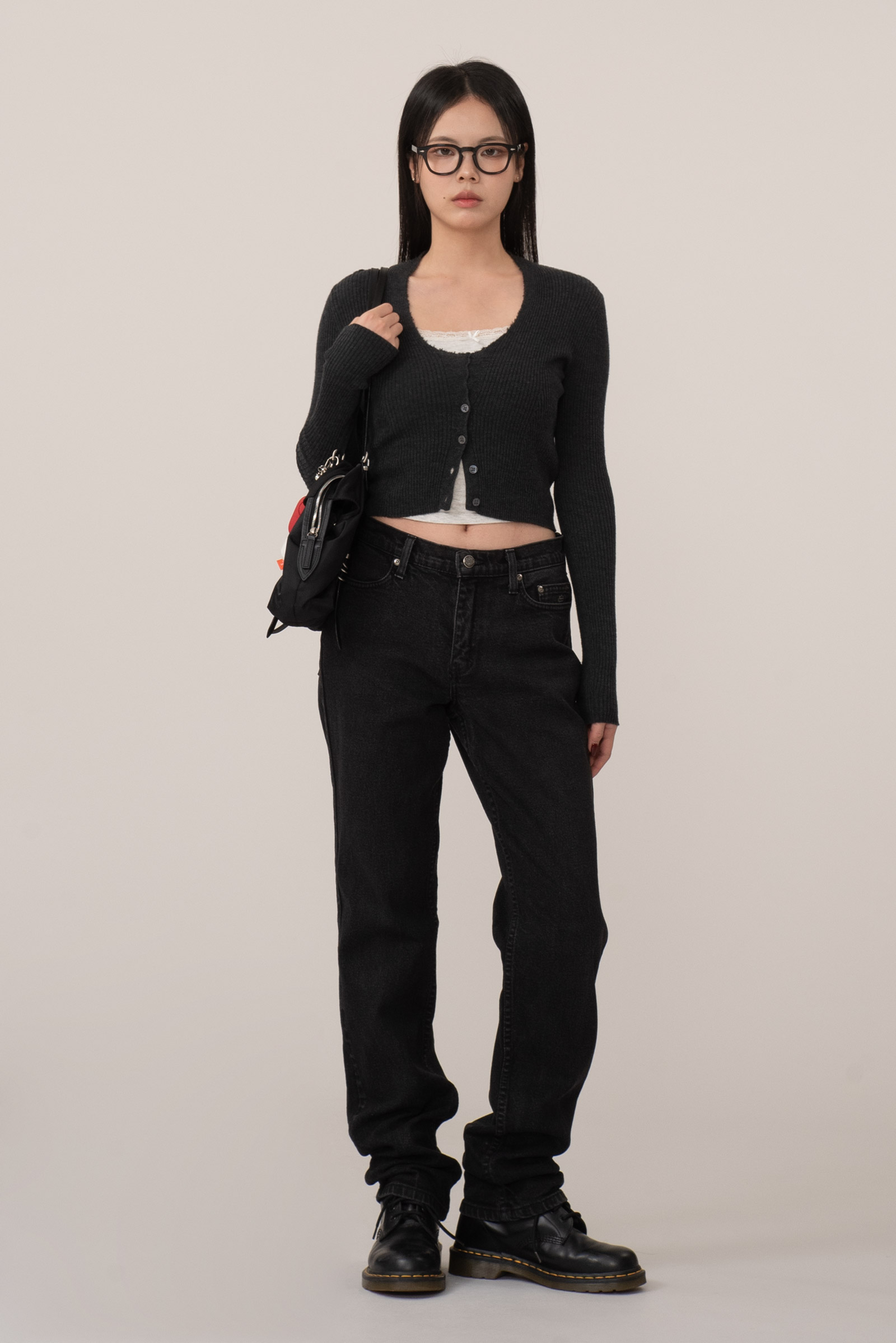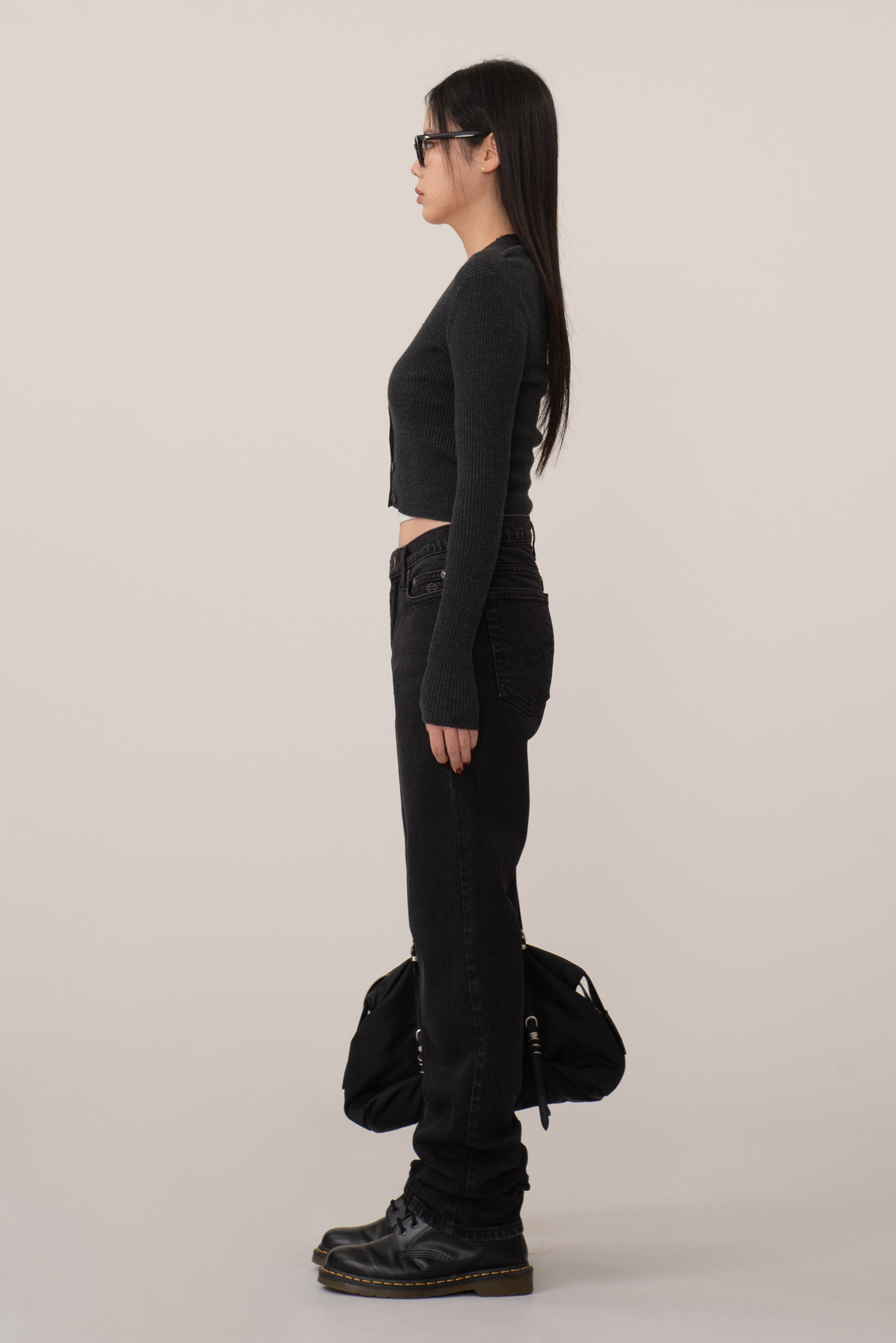계절 제한 없이 매일 입을 수 있는 데일리 블랙 데님으로 특히 워커나 부츠와 함께 착용했을 때 러프하면서도 담백한 분위기가 자연스럽게 어우러지네요.