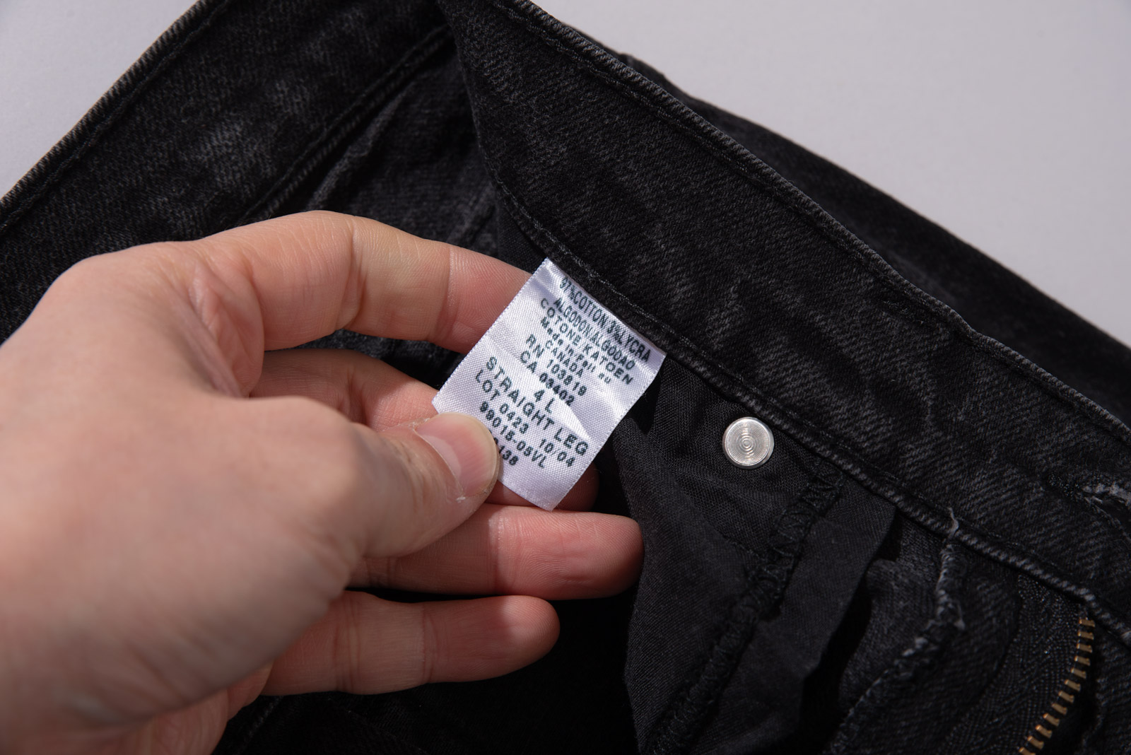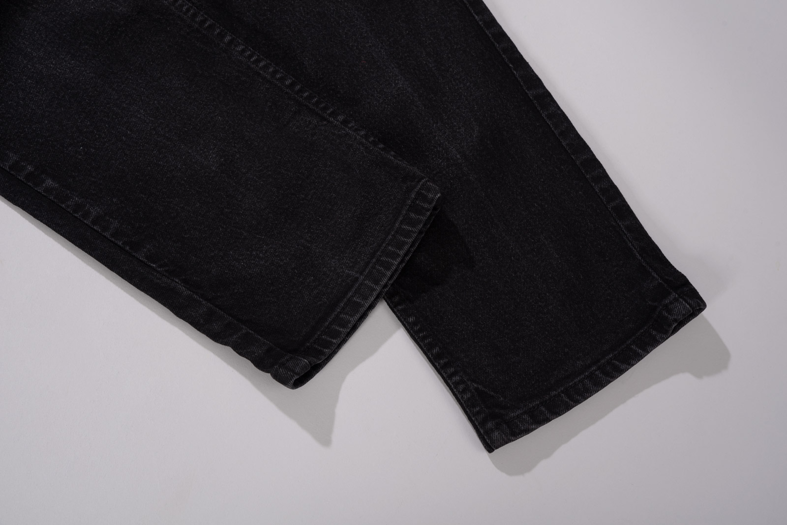 다크 그레이 느낌의 블랙 데님으로 98% 코튼에 2% 라이크라 일명 스판덱스가 섞여 있어 스트레이트 핏임에도 움직임에 여유가 느껴지며 담백함과 빈티지 무드가 조화롭네요.