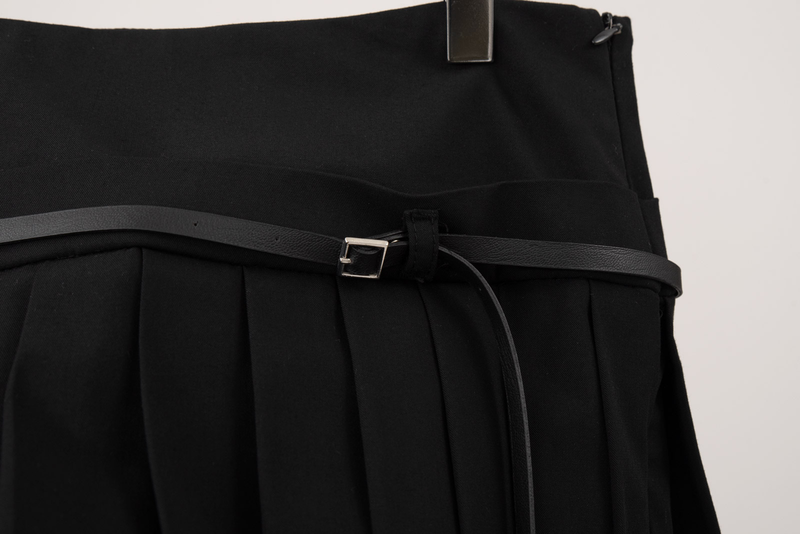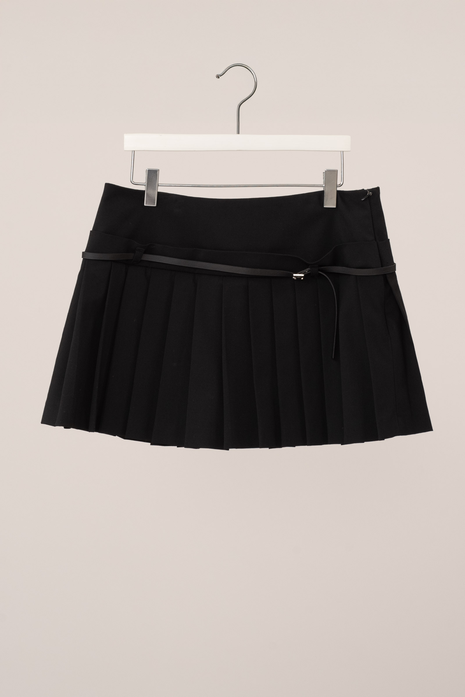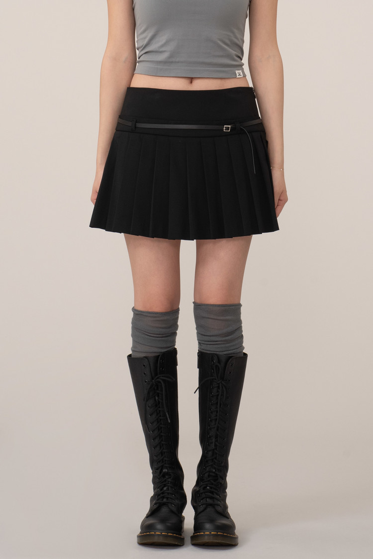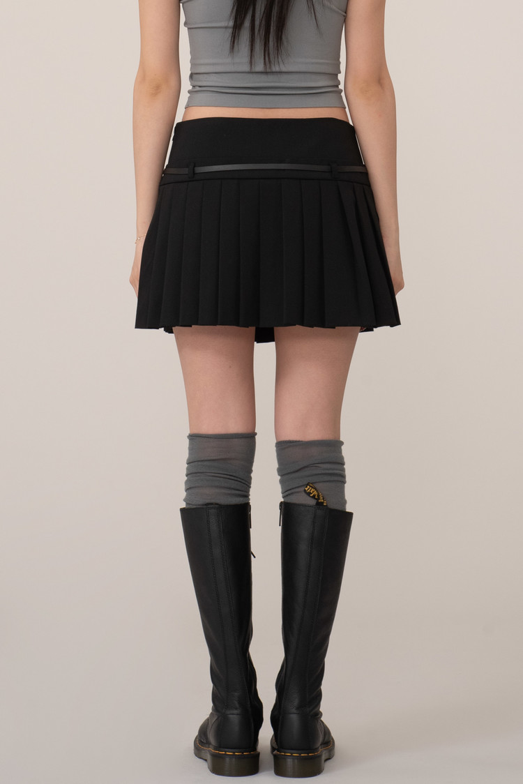 로우 라이즈 디자인에 벨트가 좀 더 아래 달려 있어서 로우 라이즈가 강조되고 상의로 윗 부분이 가려지더라도 벨트가 충분히 보여서 좀 더 디테일적인 면이 좋은 스커트랍니다.