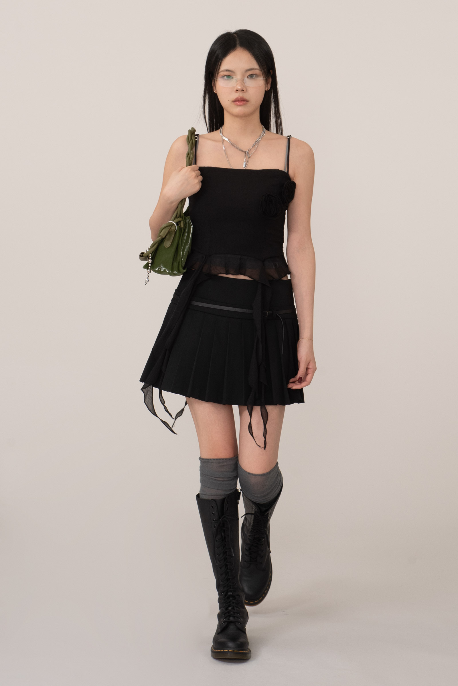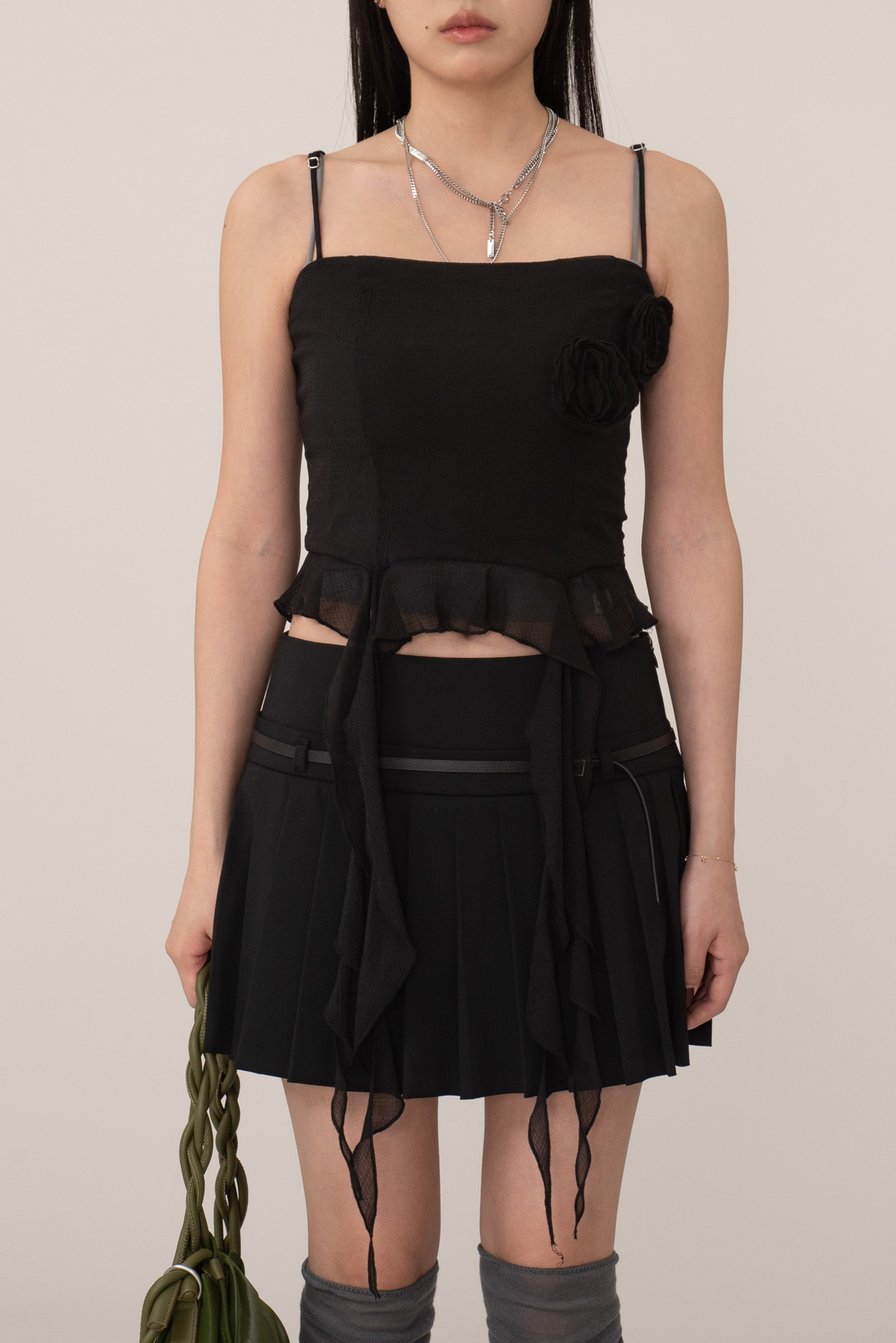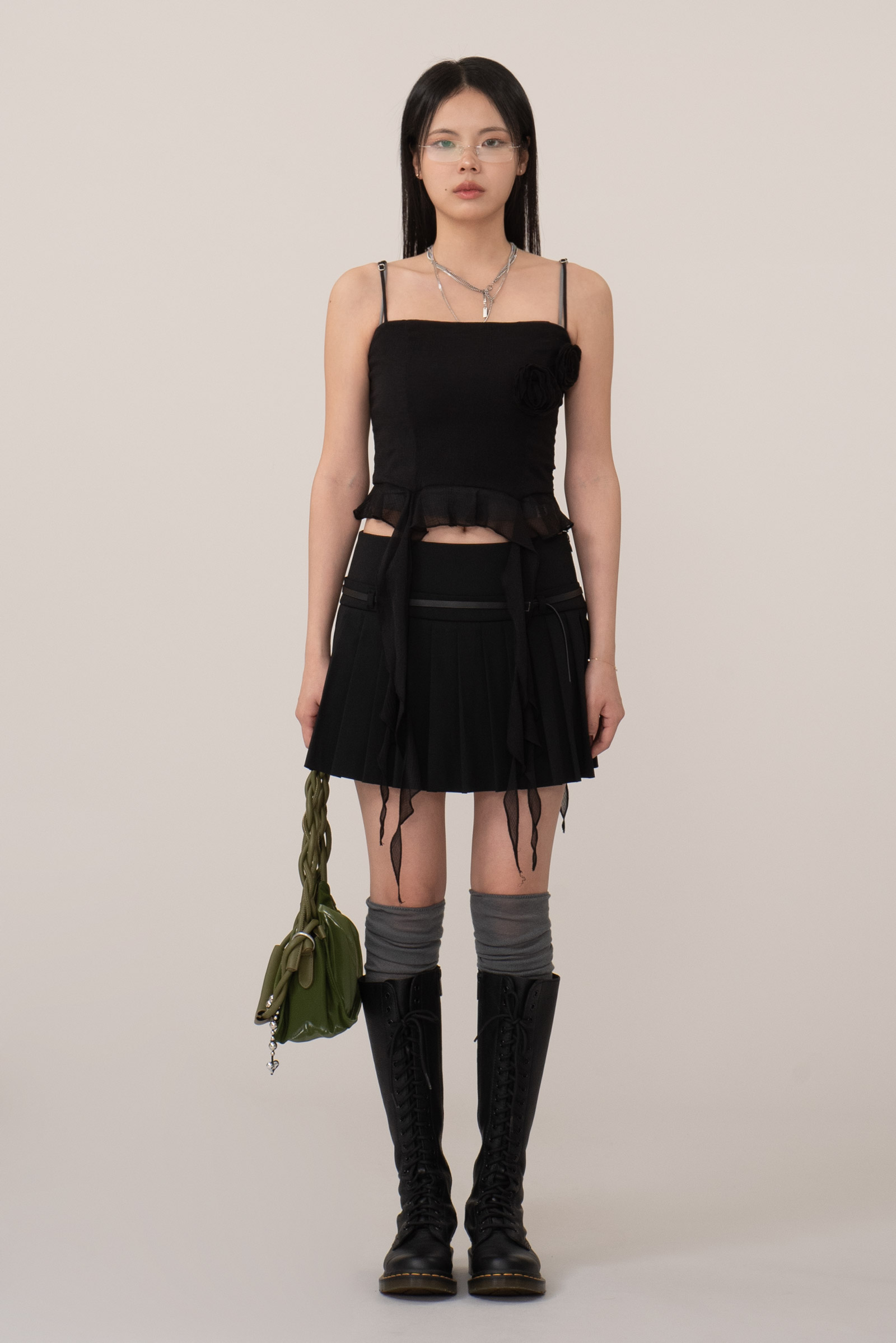 로우 라이즈 디자인에 벨트가 좀 더 아래 달려 있어서 로우 라이즈가 강조되고 상의로 윗 부분이 가려지더라도 벨트가 충분히 보여서 좀 더 디테일적인 면이 좋은 스커트랍니다.