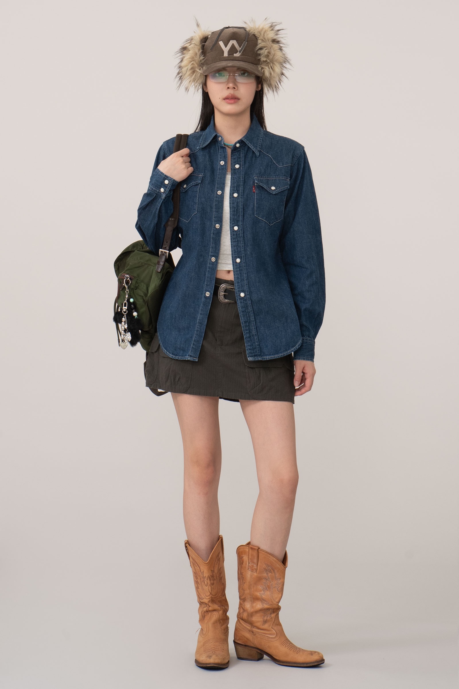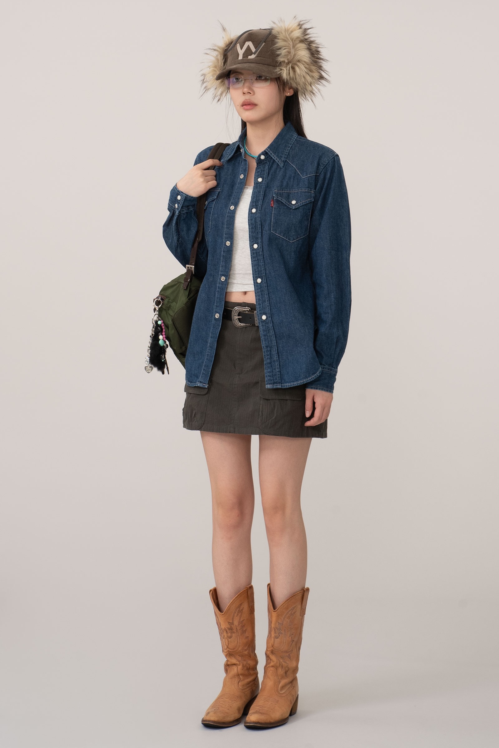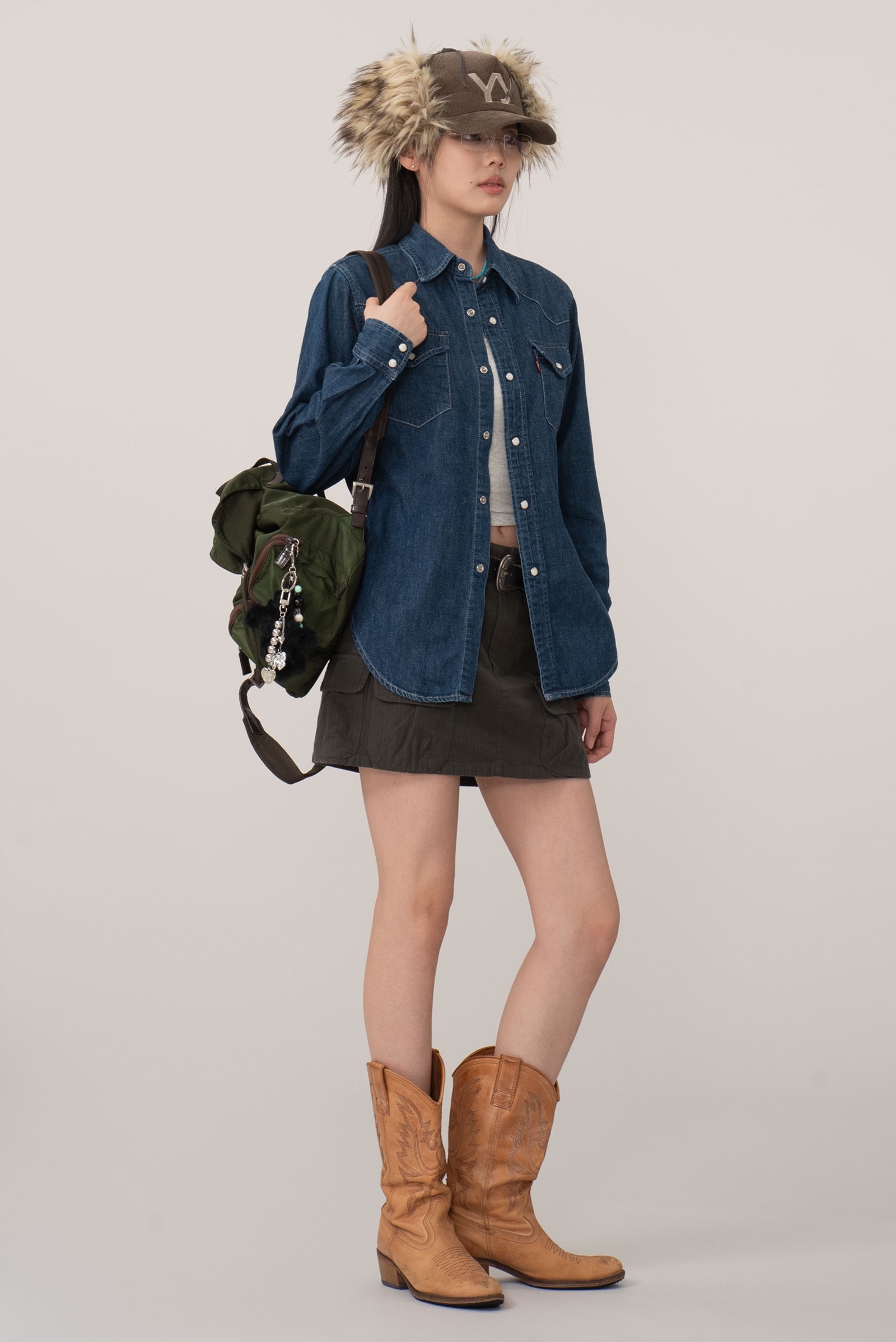 내구성이 좋은 립스탑 소재, 카고 스커트의 포인트인 포켓이 포인트 되며 단정하지만 존재감 있는 피스랍니다.