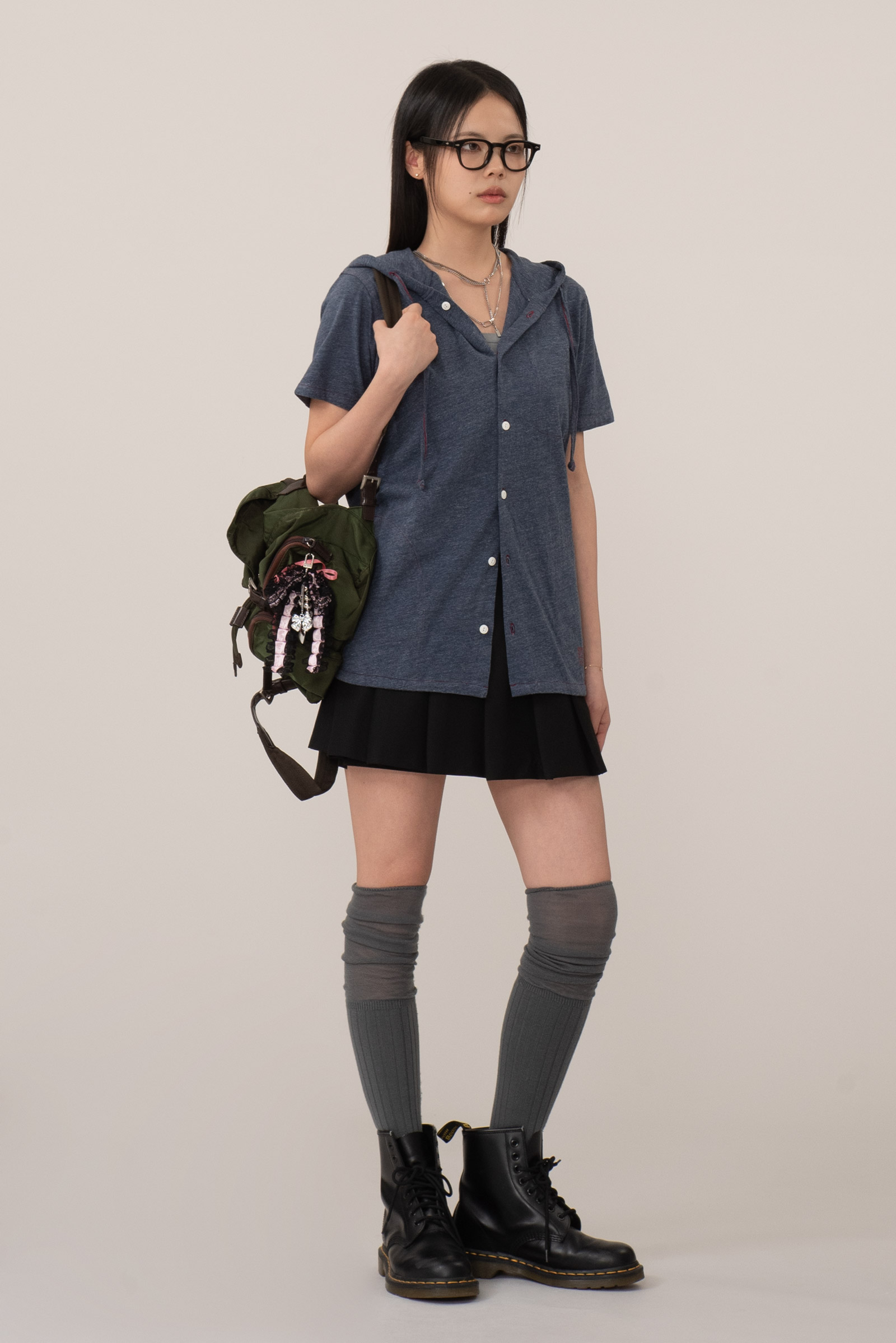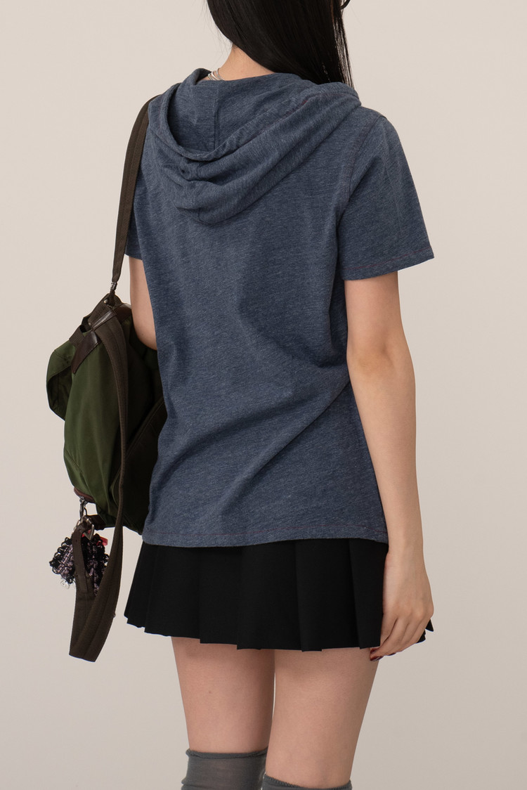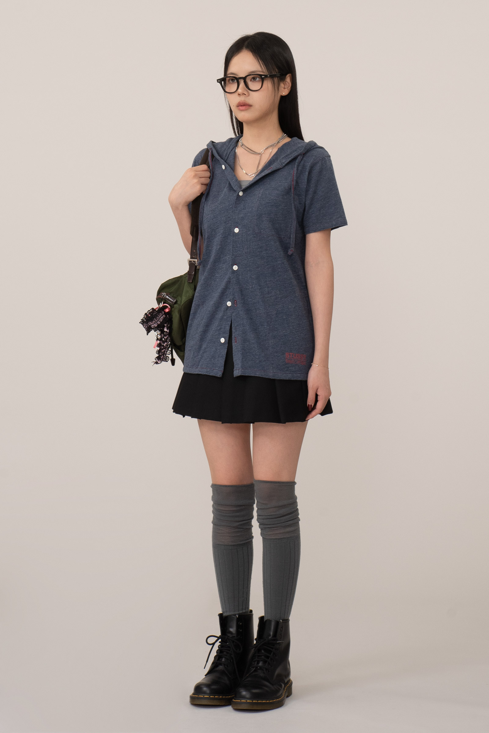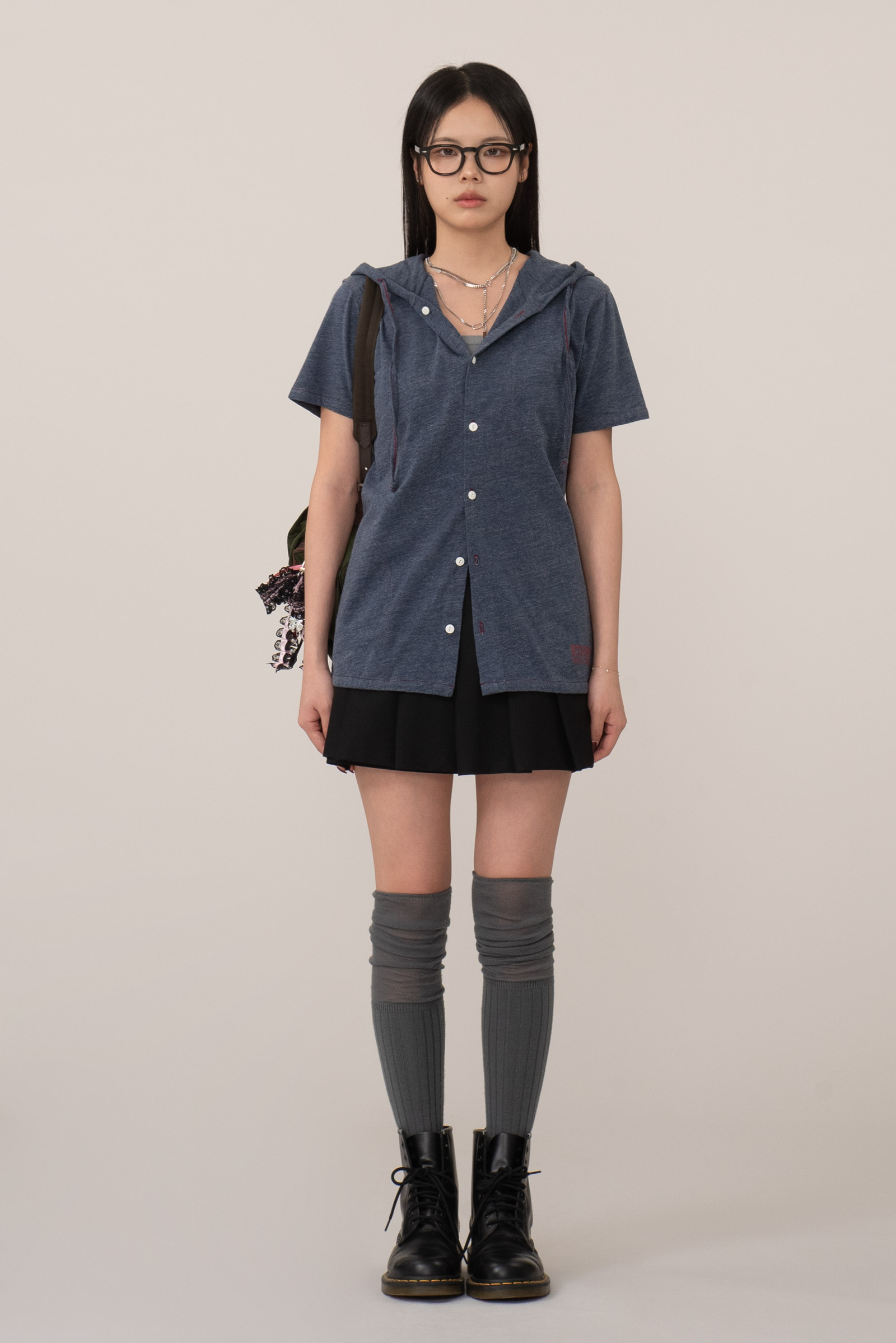 가벼운 헤더 저지 원단을 사용해 티셔츠처럼 편안하면서도 프론트 버튼과 후드 스트링 디테일로 셔츠 특유의 구조감을 더한 아이템인데요.