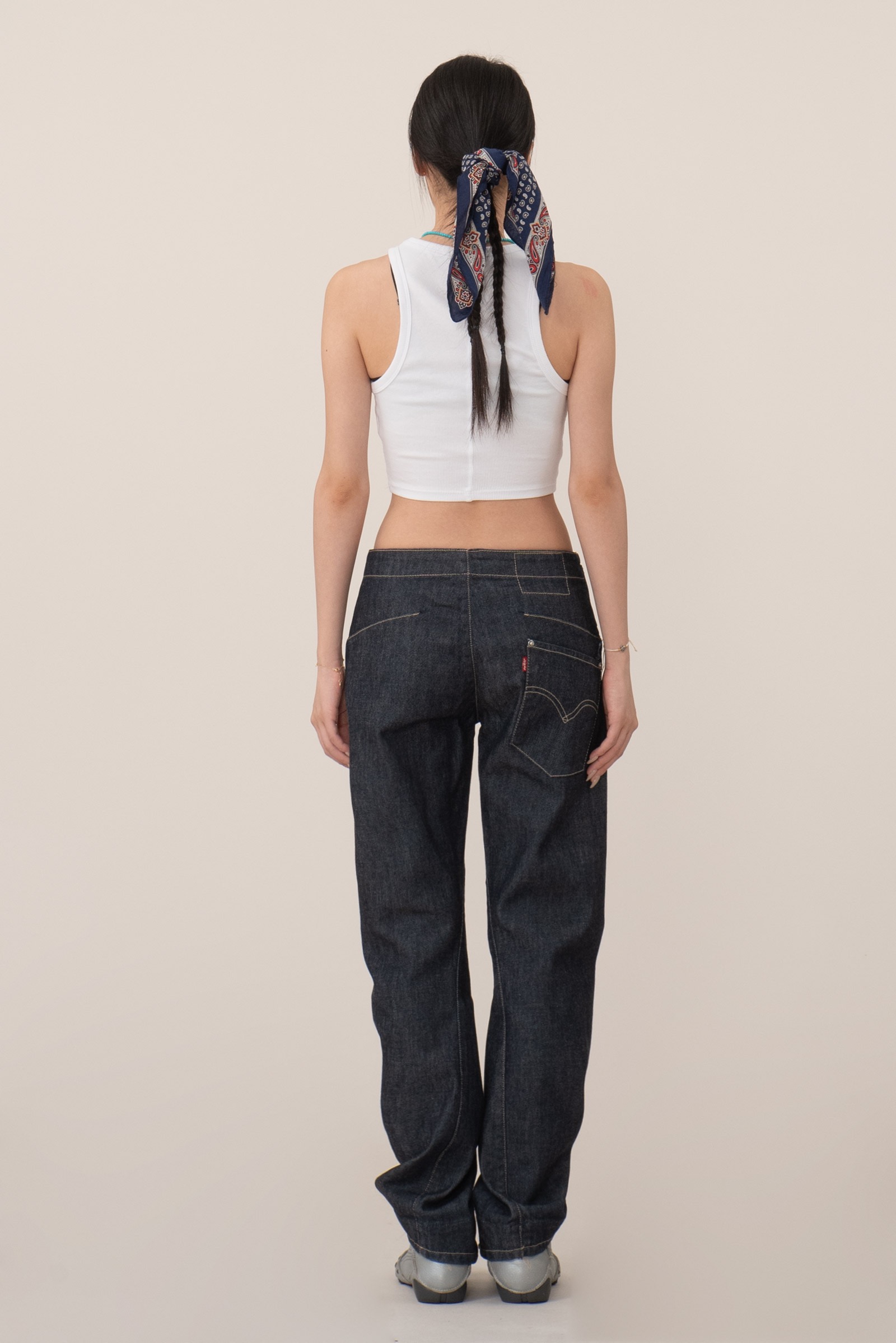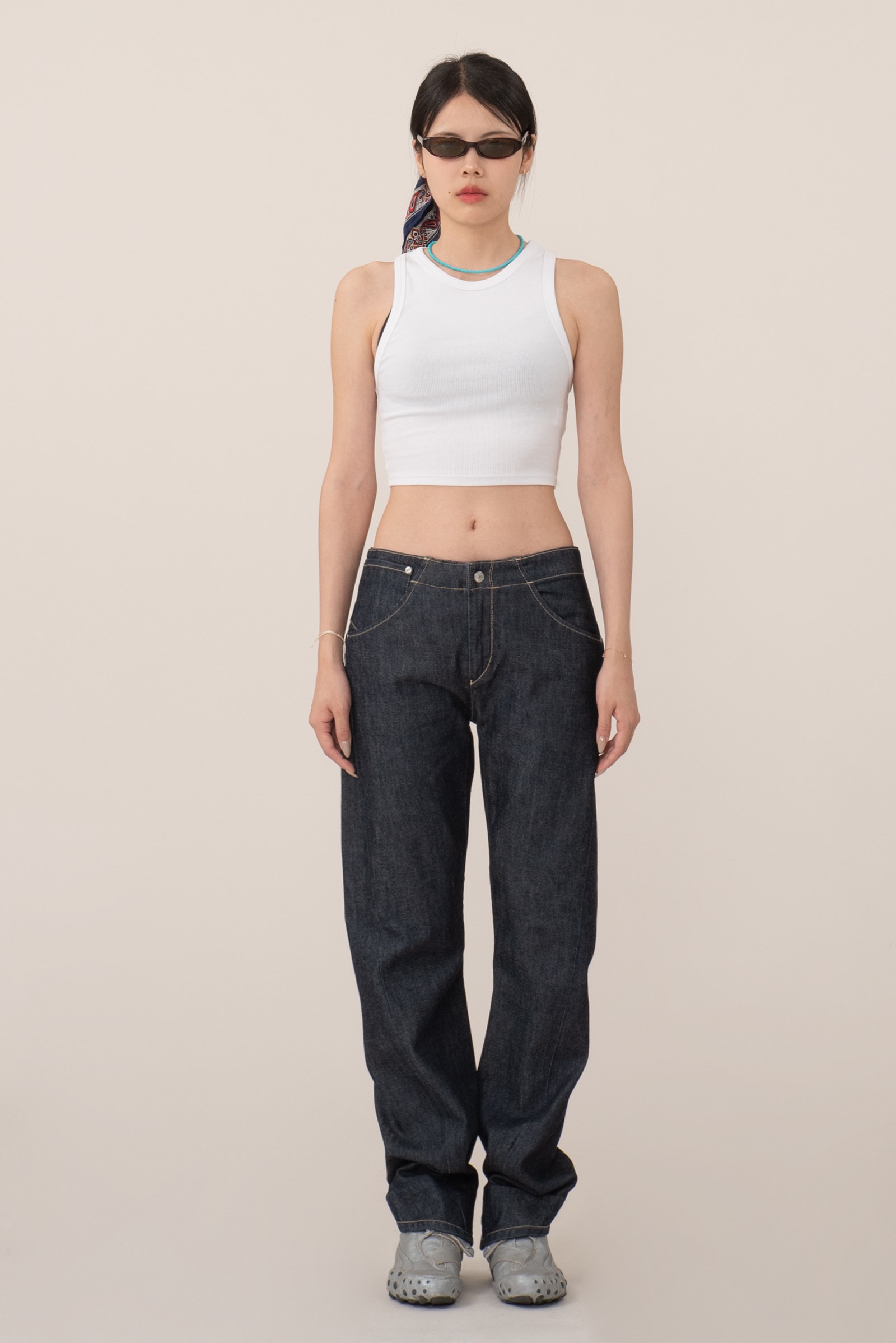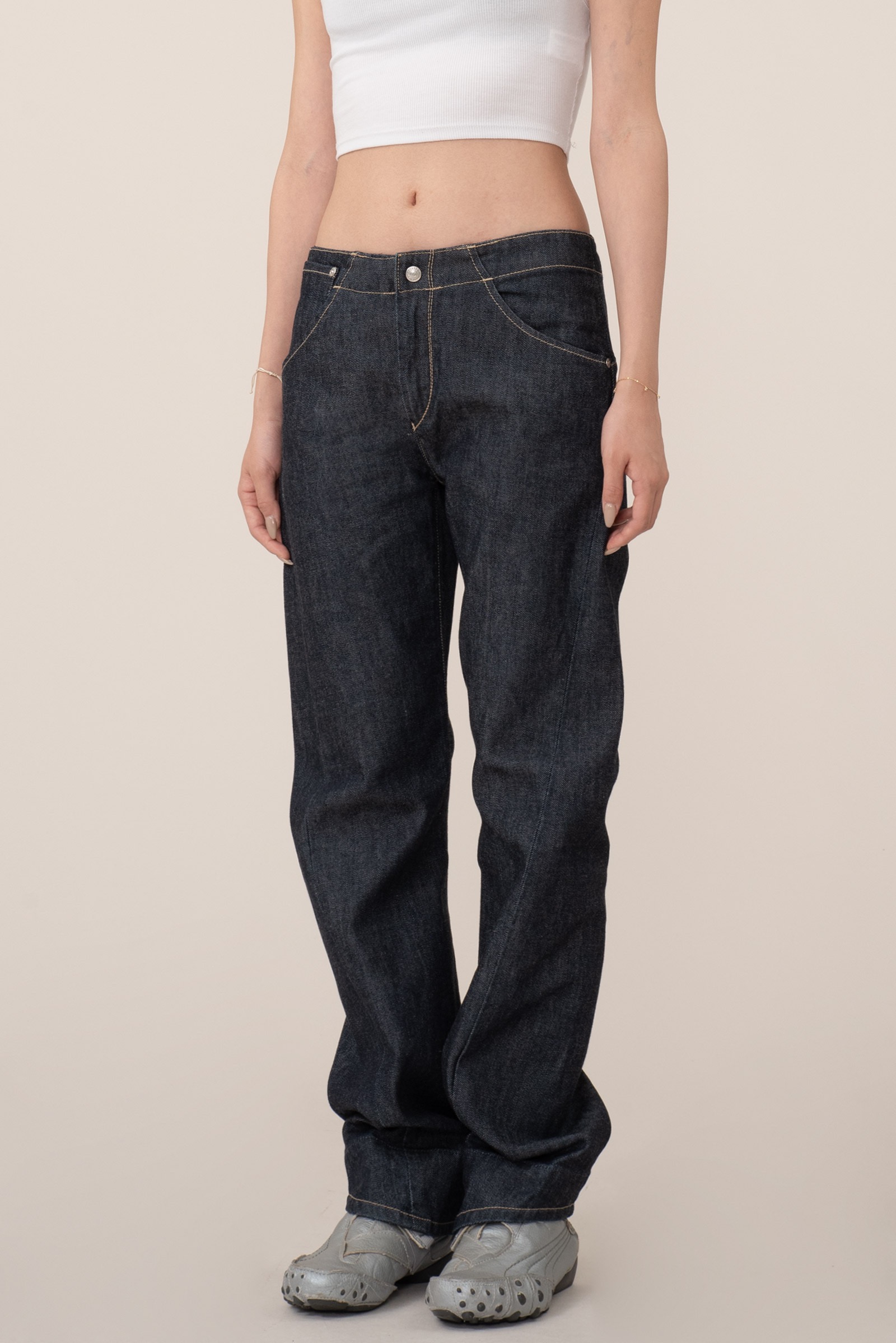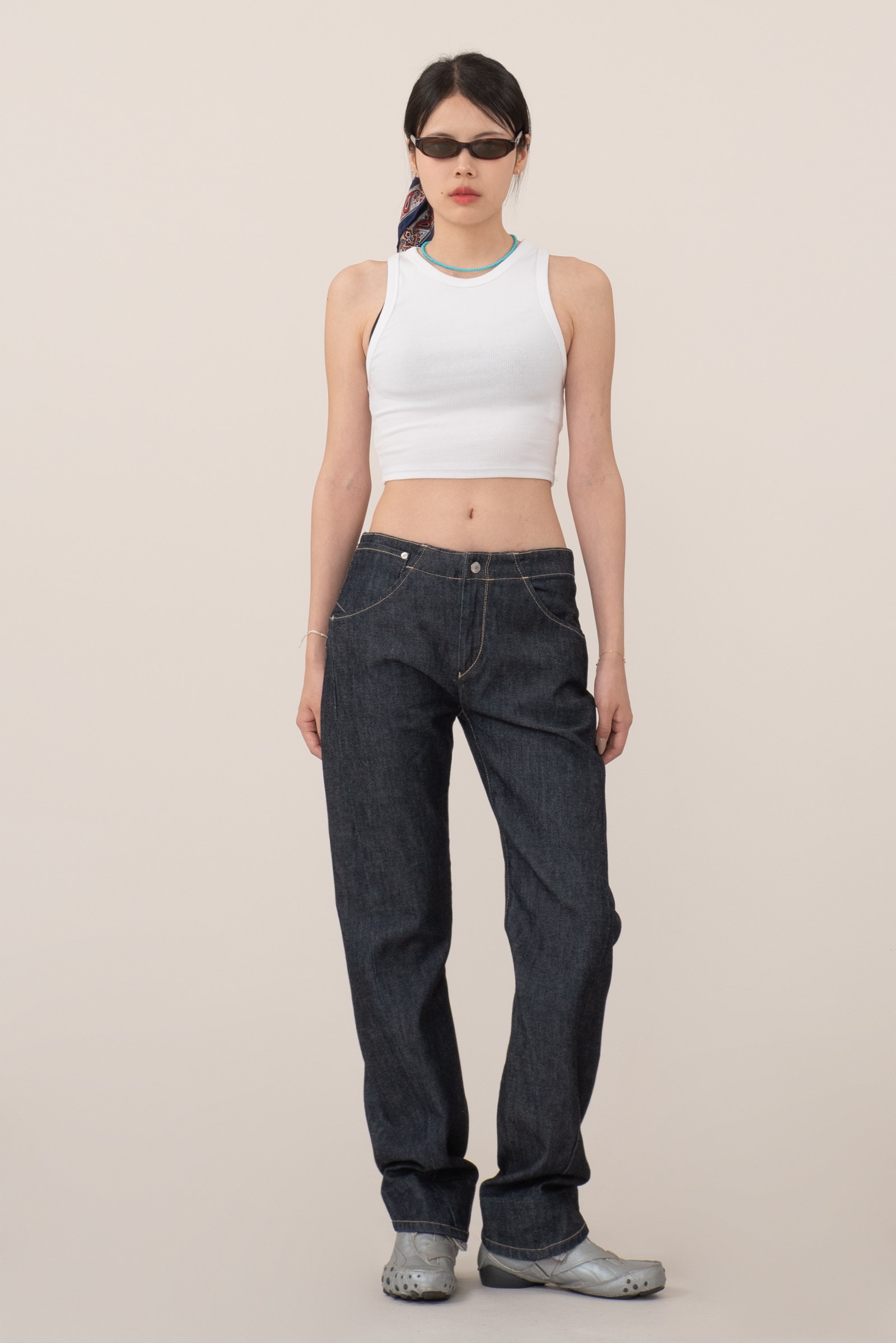 기존 피스들과 비교했을 때 밑위가 짧은 로우 라이즈, 슬림한 모델이랍니다.
