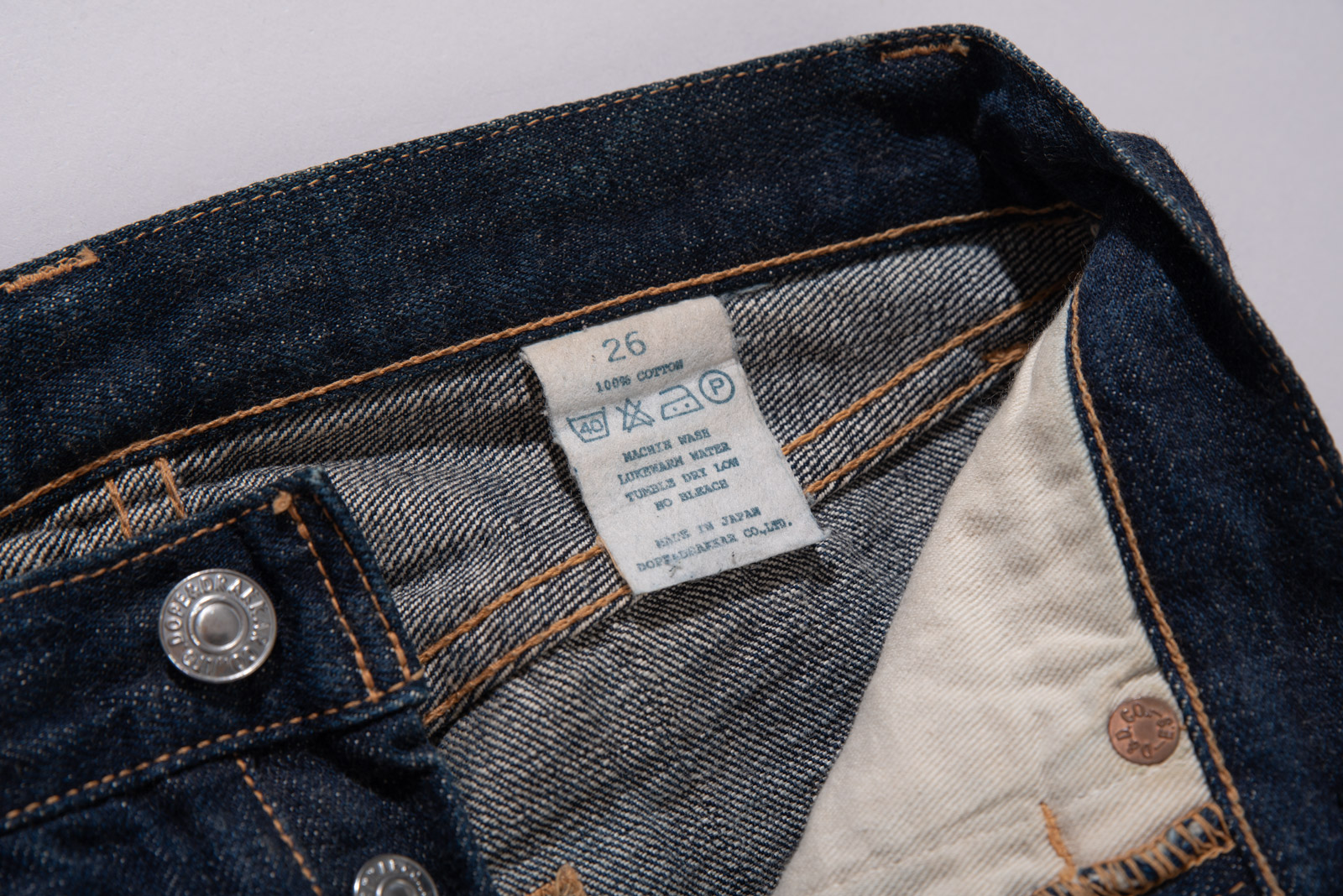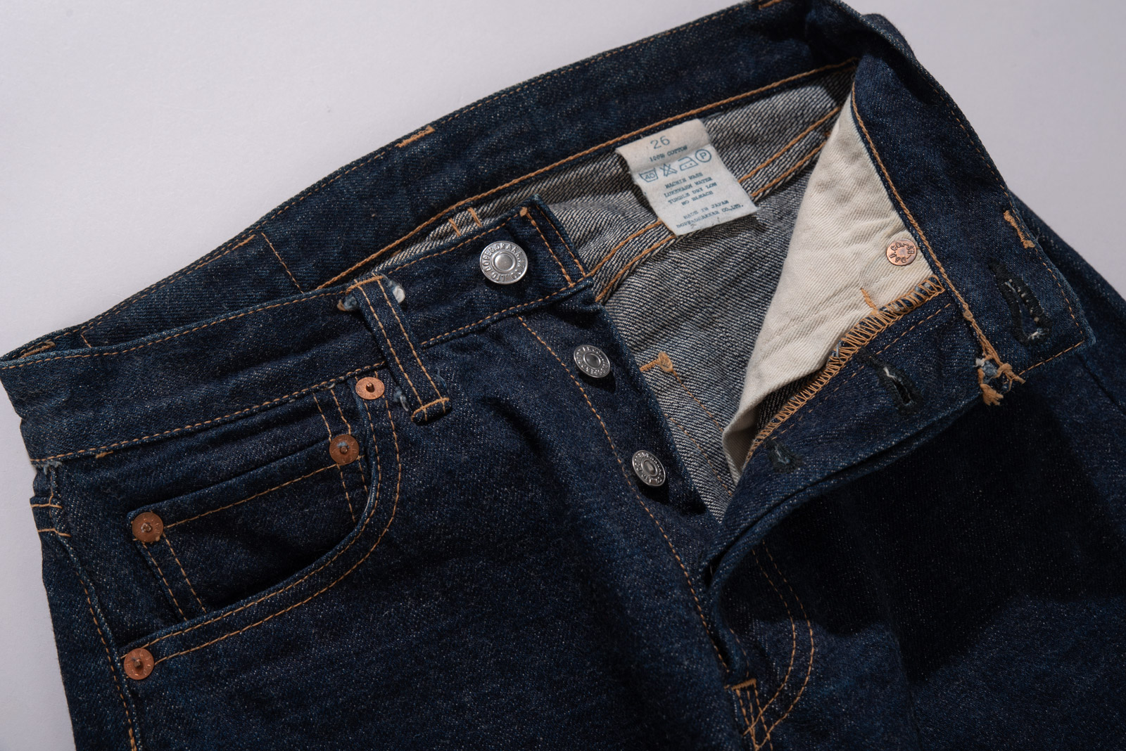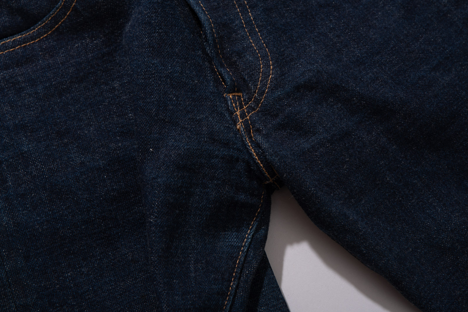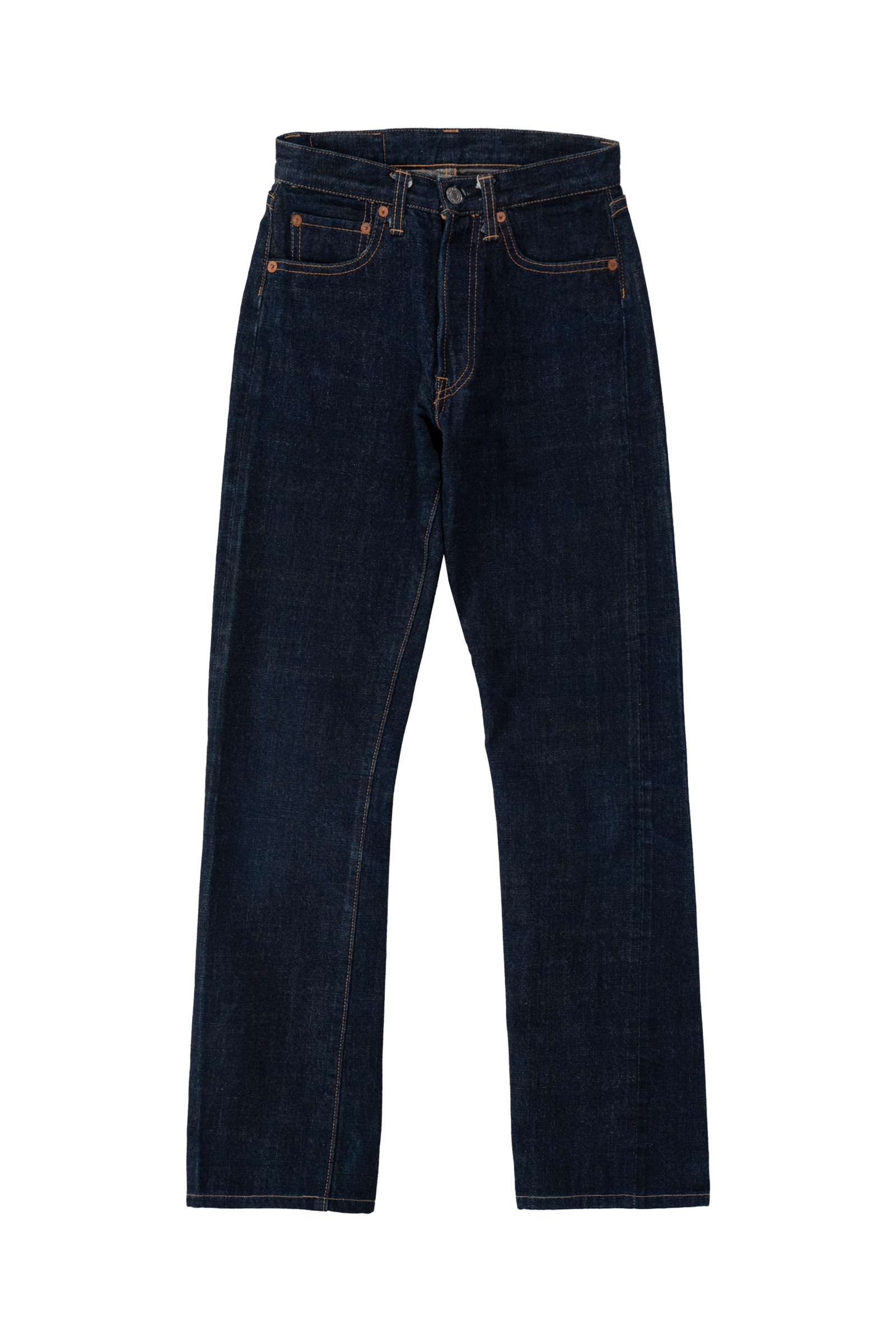 버튼 플라이, 오렌지 스티치, 두터운 코튼 셀비지의 결은 90년대 일본 워크웨어 브랜드들이 추구하던 기본에 충실한 제작 방식을 보여주고 있는데 청바지의 틀이 되는 501 양식으로 제작되었음을 알 수 있으며 불필요한 장식을 배제한 디테일과 단정하게 떨어지는 스트레이트 핏의 클래식을 느끼실 수 있습니다.