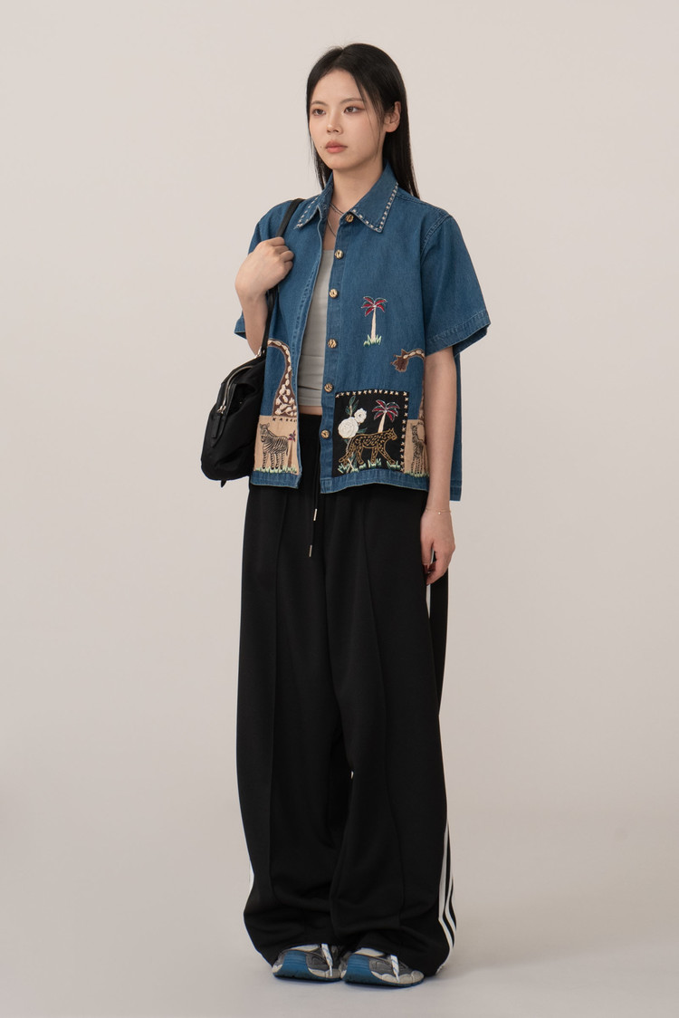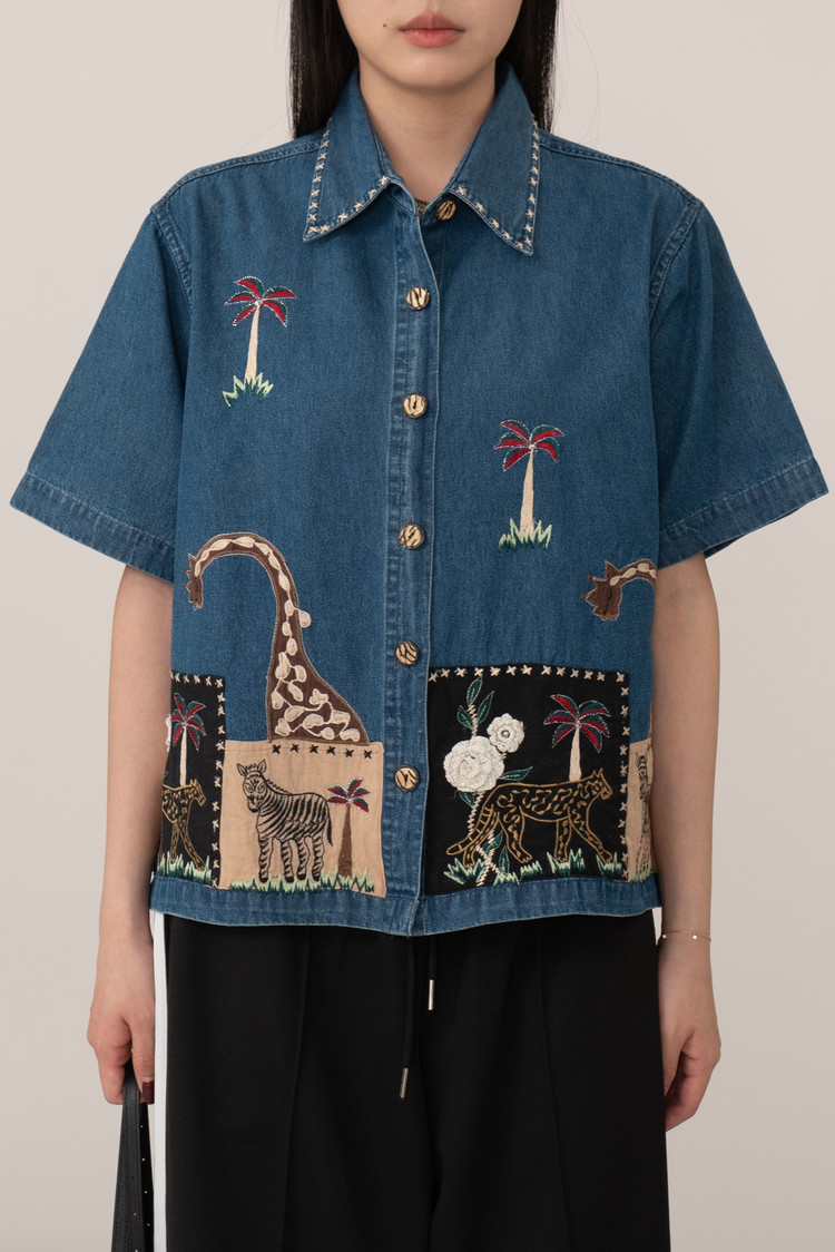 ✔ Vintage Embroidered Denim Shirt