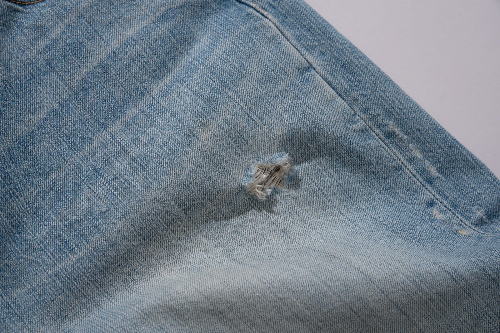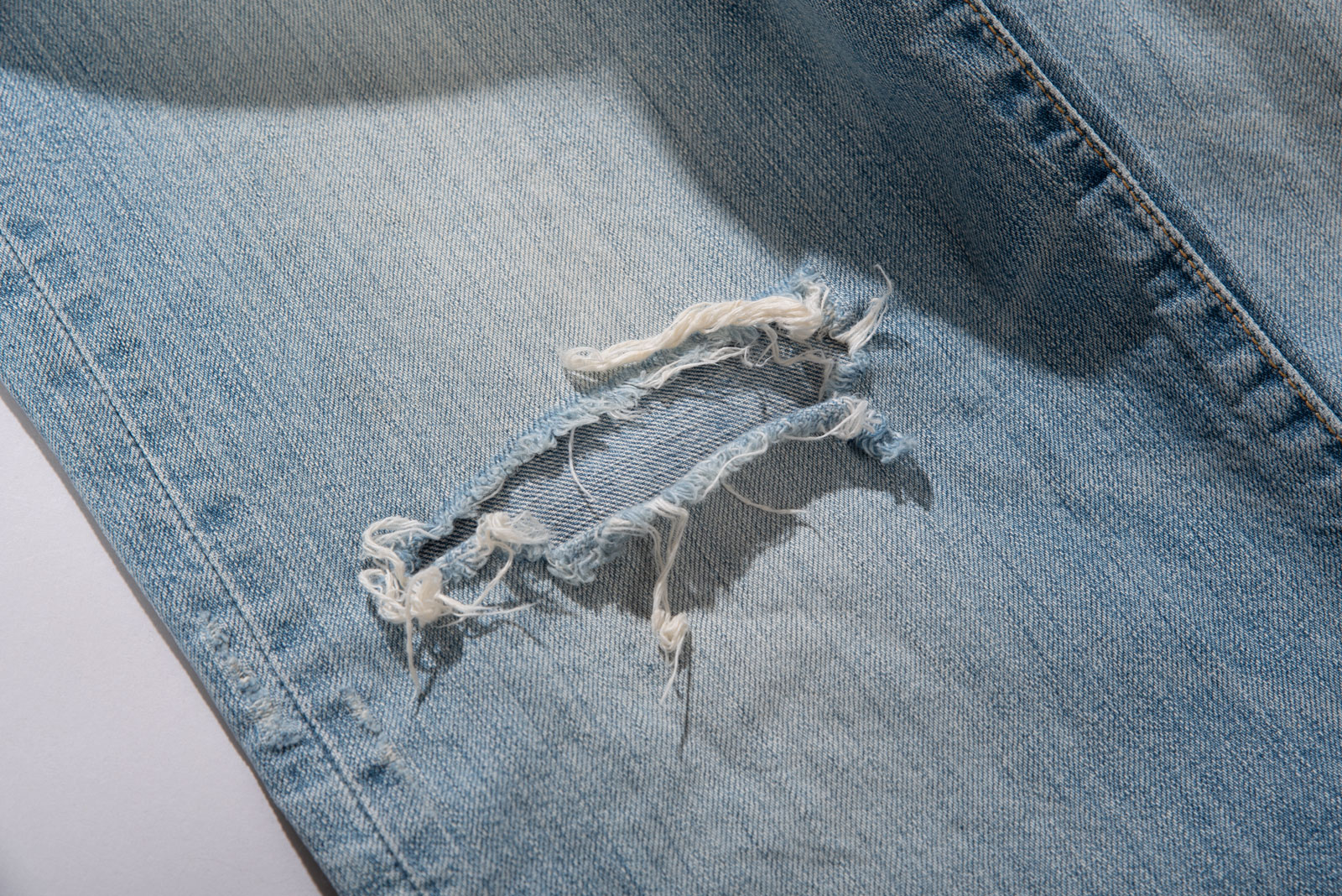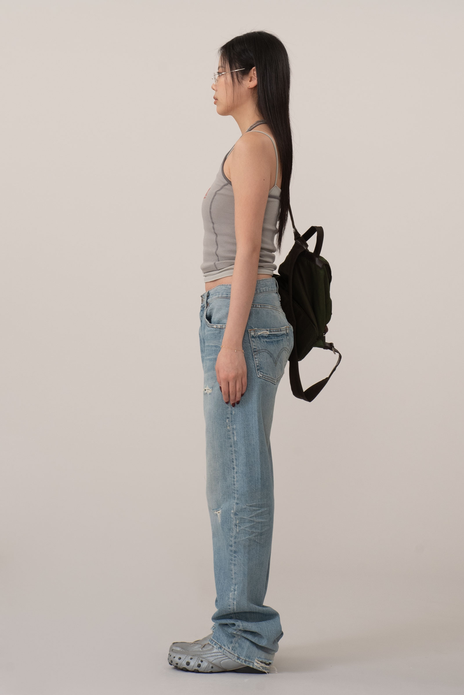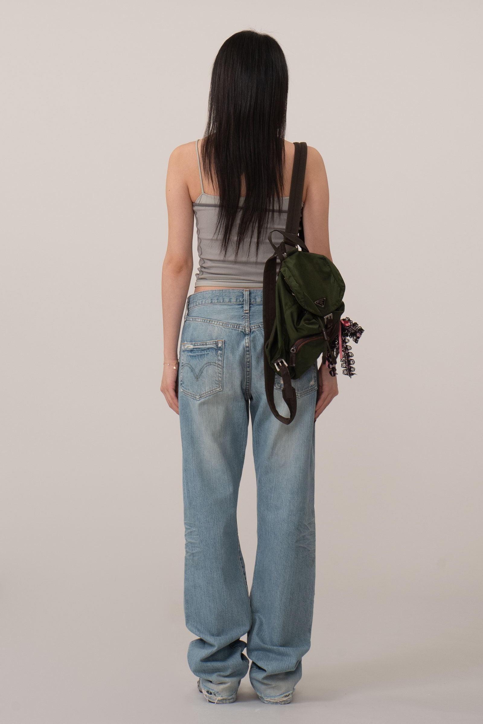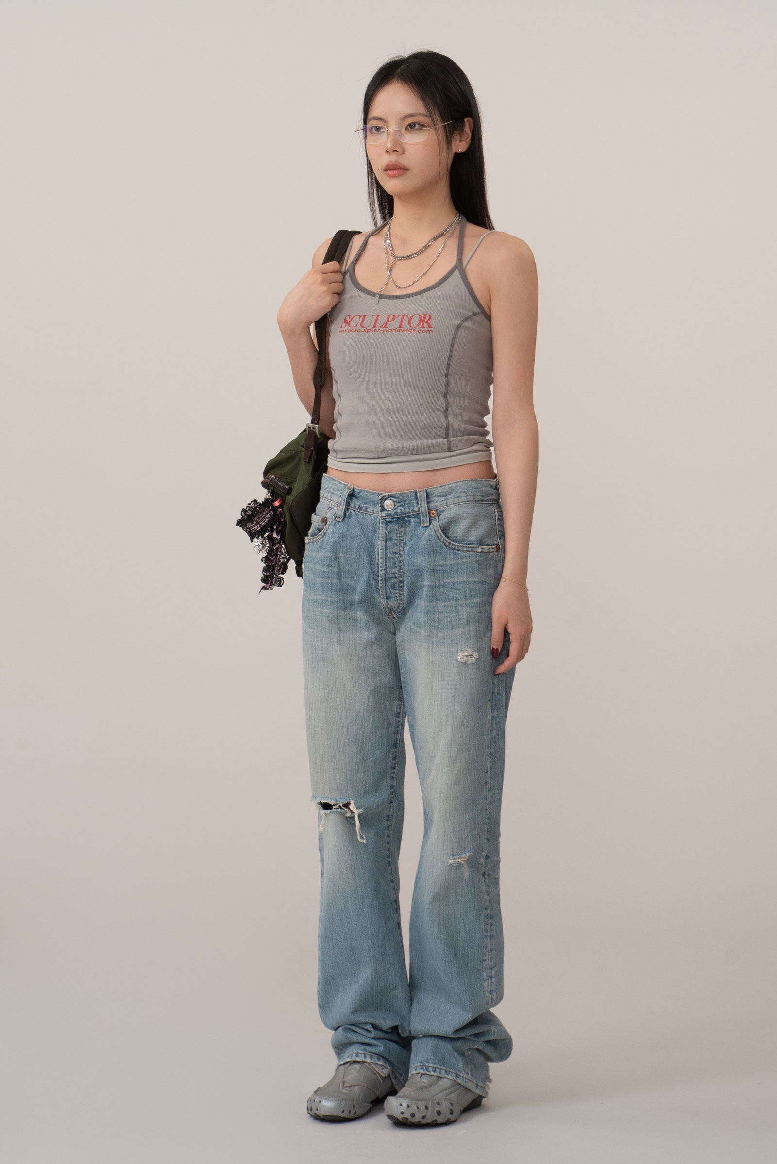버튼 플라이 디테일이 주는 올드한 감도는 그대로 가져가면서 무릎과 곳곳의 자연스러운 디스트로이드 포인트가 룩에 힘을 실어줘 단품만으로도 충분히 포인트 되는 피스랍니다.