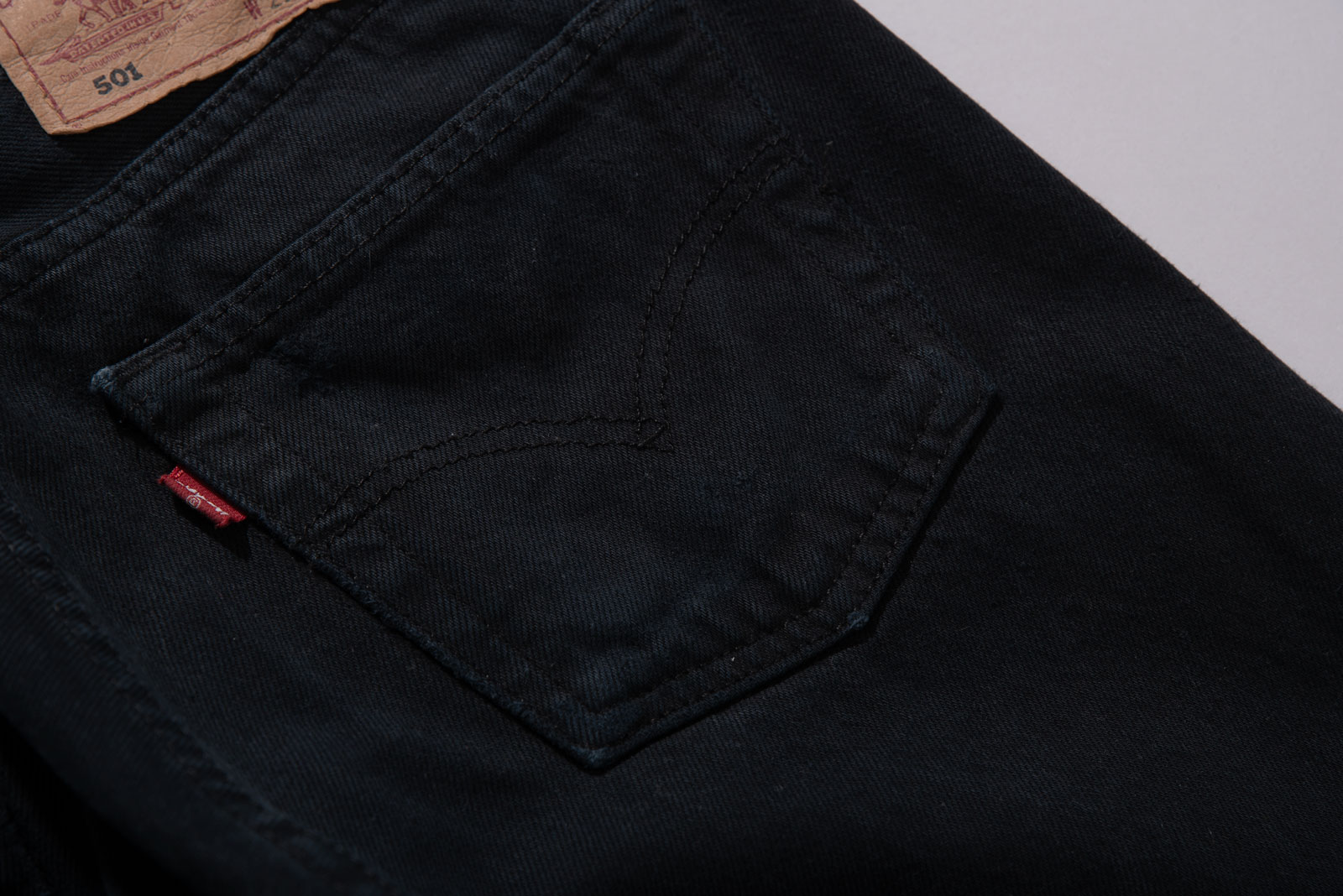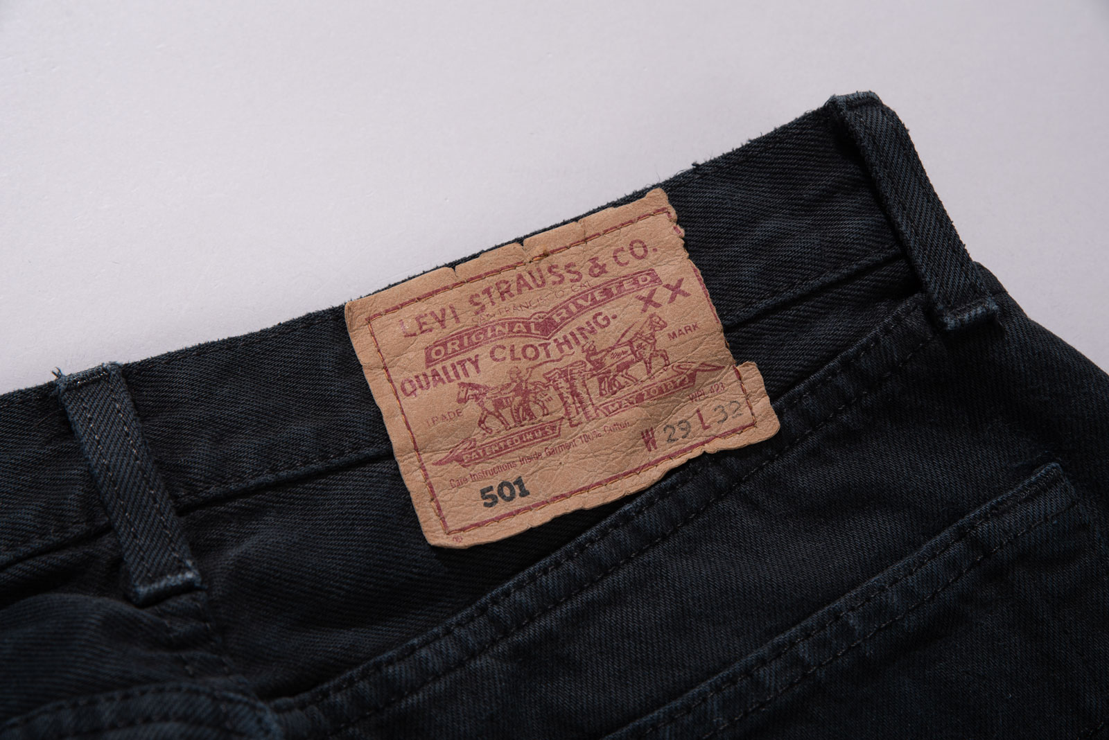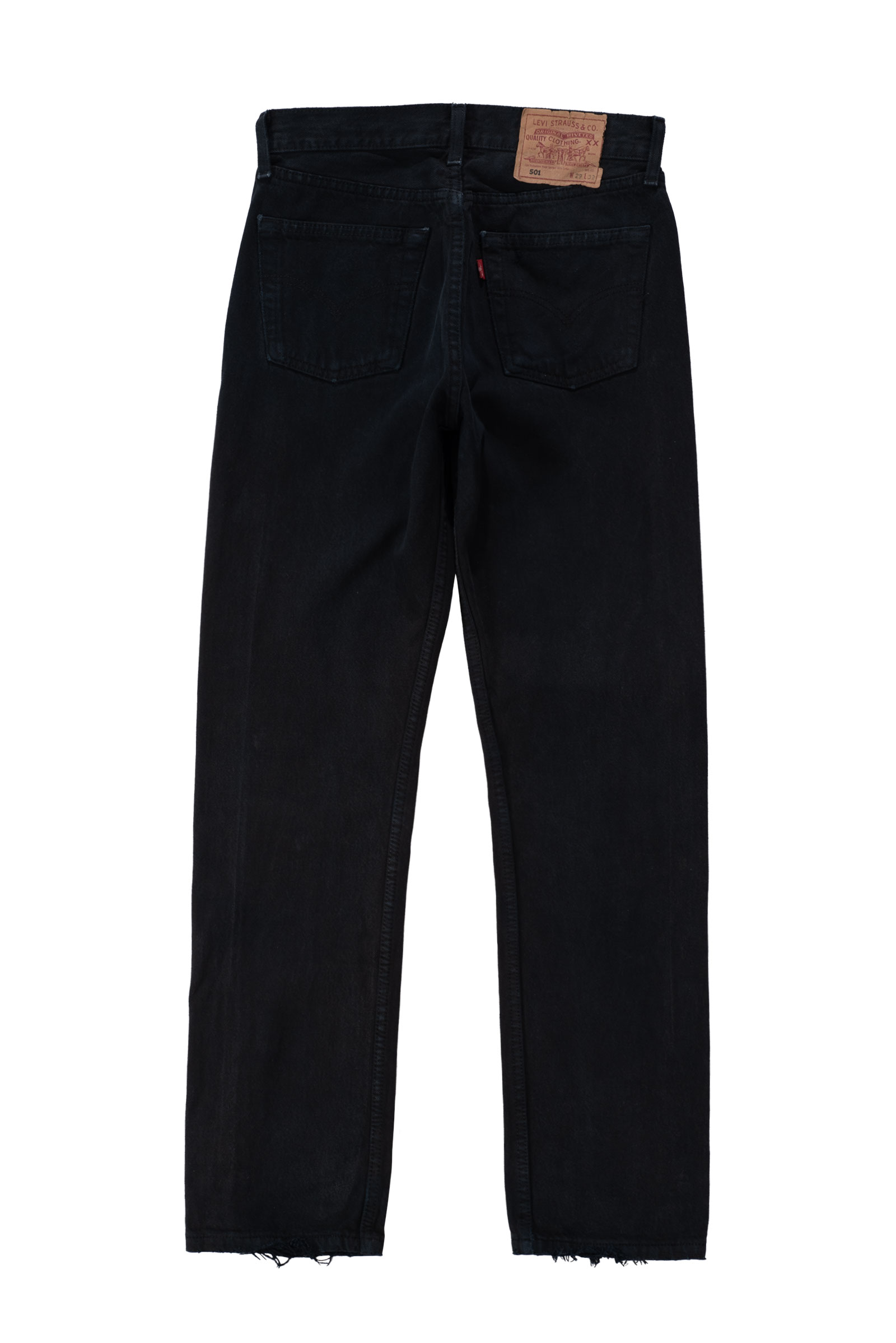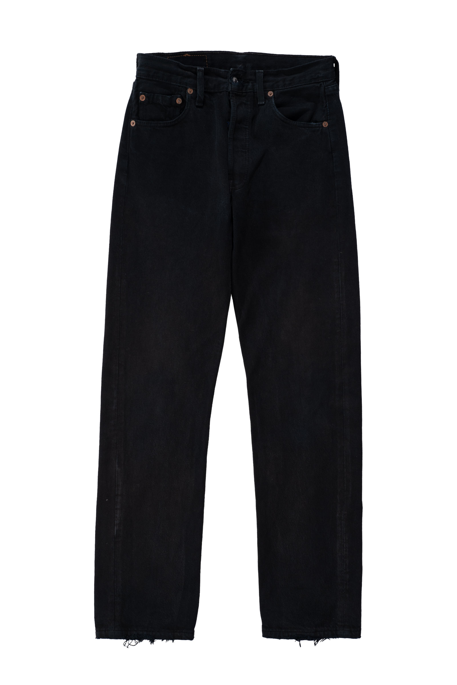 어느 상의와도 잘 맞고 계절을 크게 타지 않는 블랙 데님의 장점, 백 패치가 자연스럽게 마모된 상태라 빈티지 리바이스의 감성을 그대로 느낄 수 있어요.