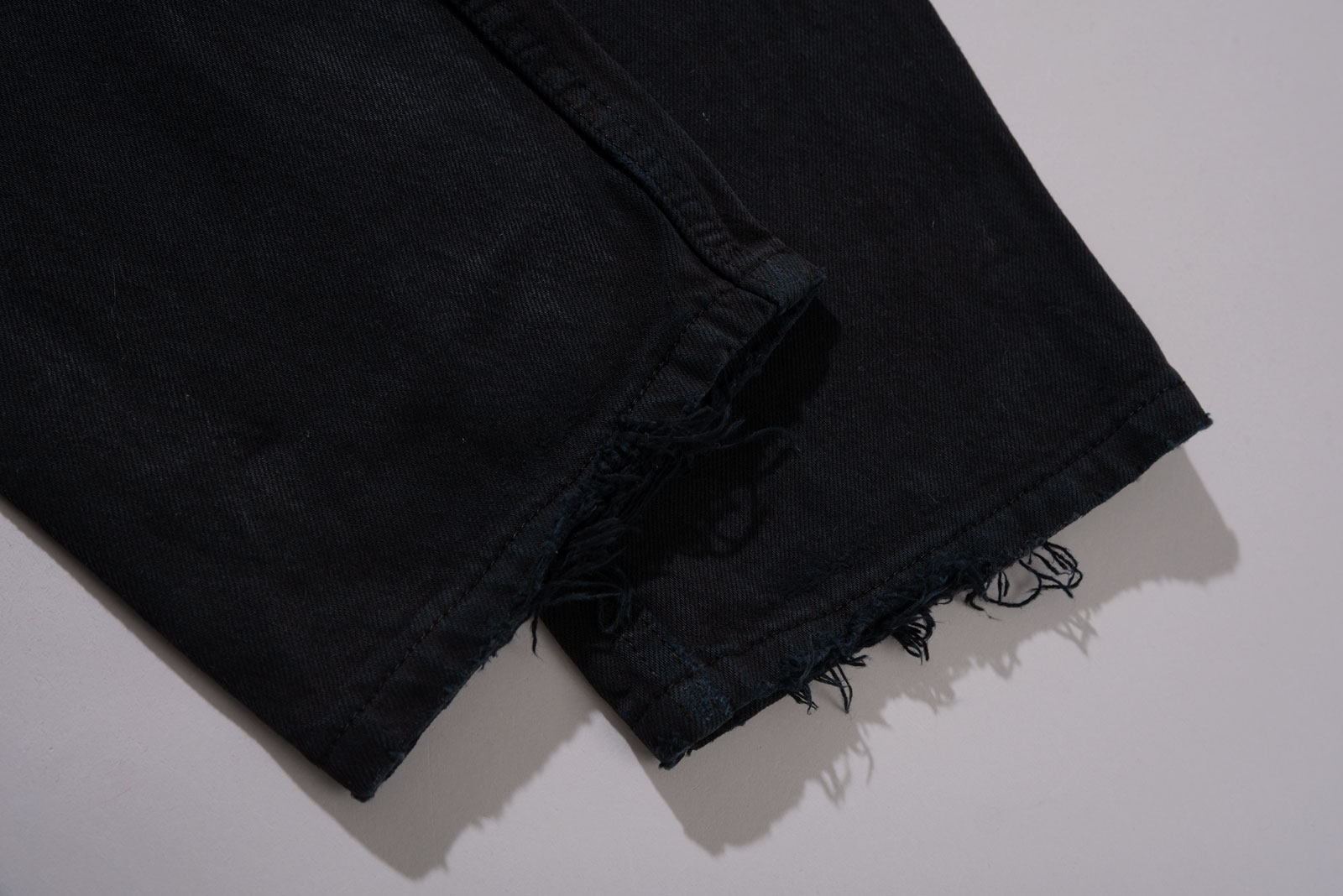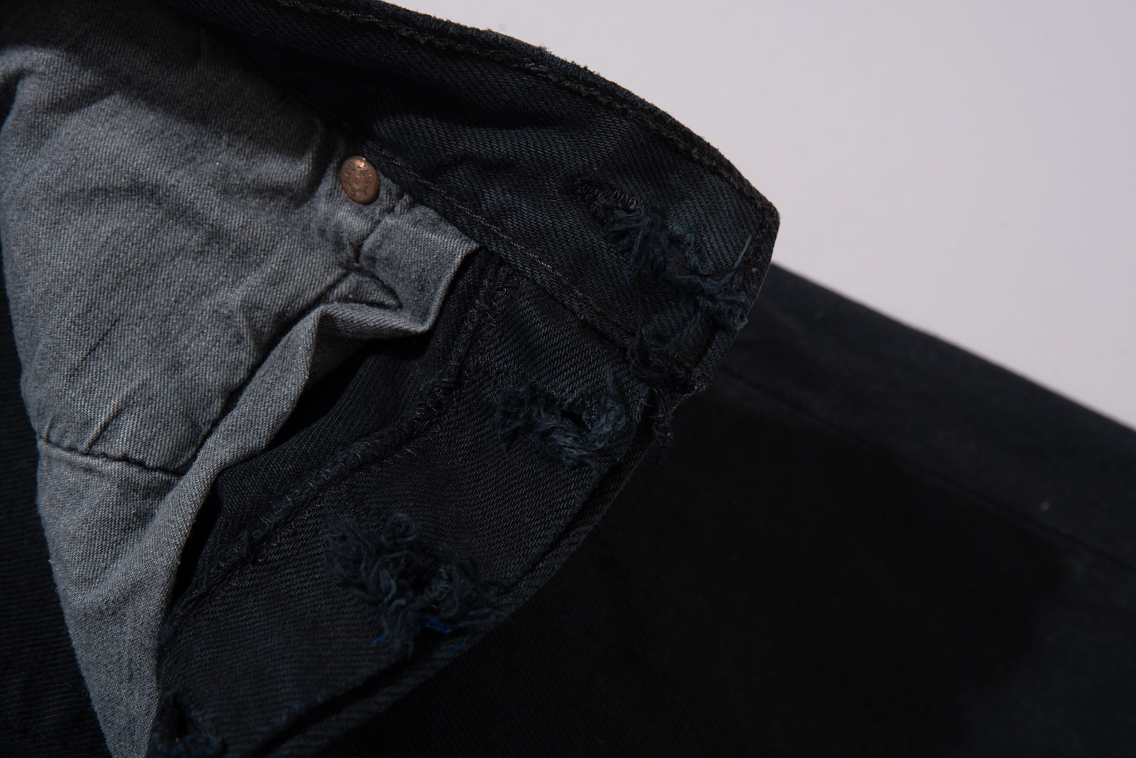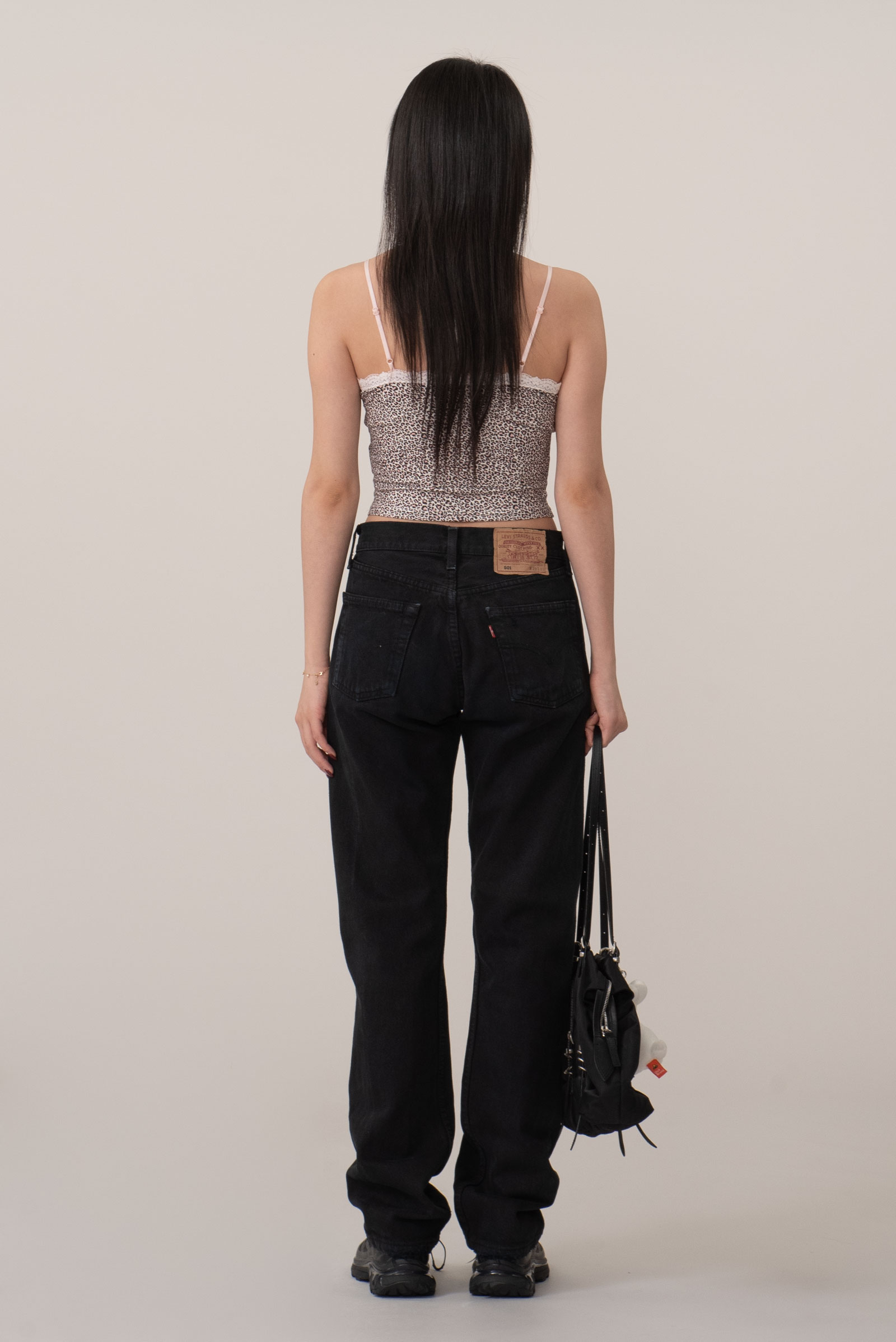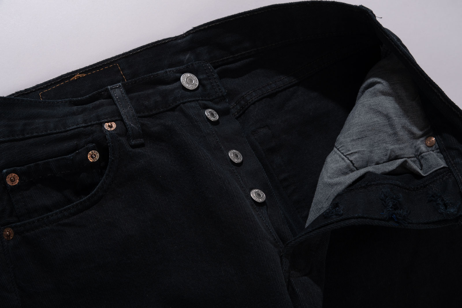 어느 상의와도 잘 맞고 계절을 크게 타지 않는 블랙 데님의 장점, 백 패치가 자연스럽게 마모된 상태라 빈티지 리바이스의 감성을 그대로 느낄 수 있어요.