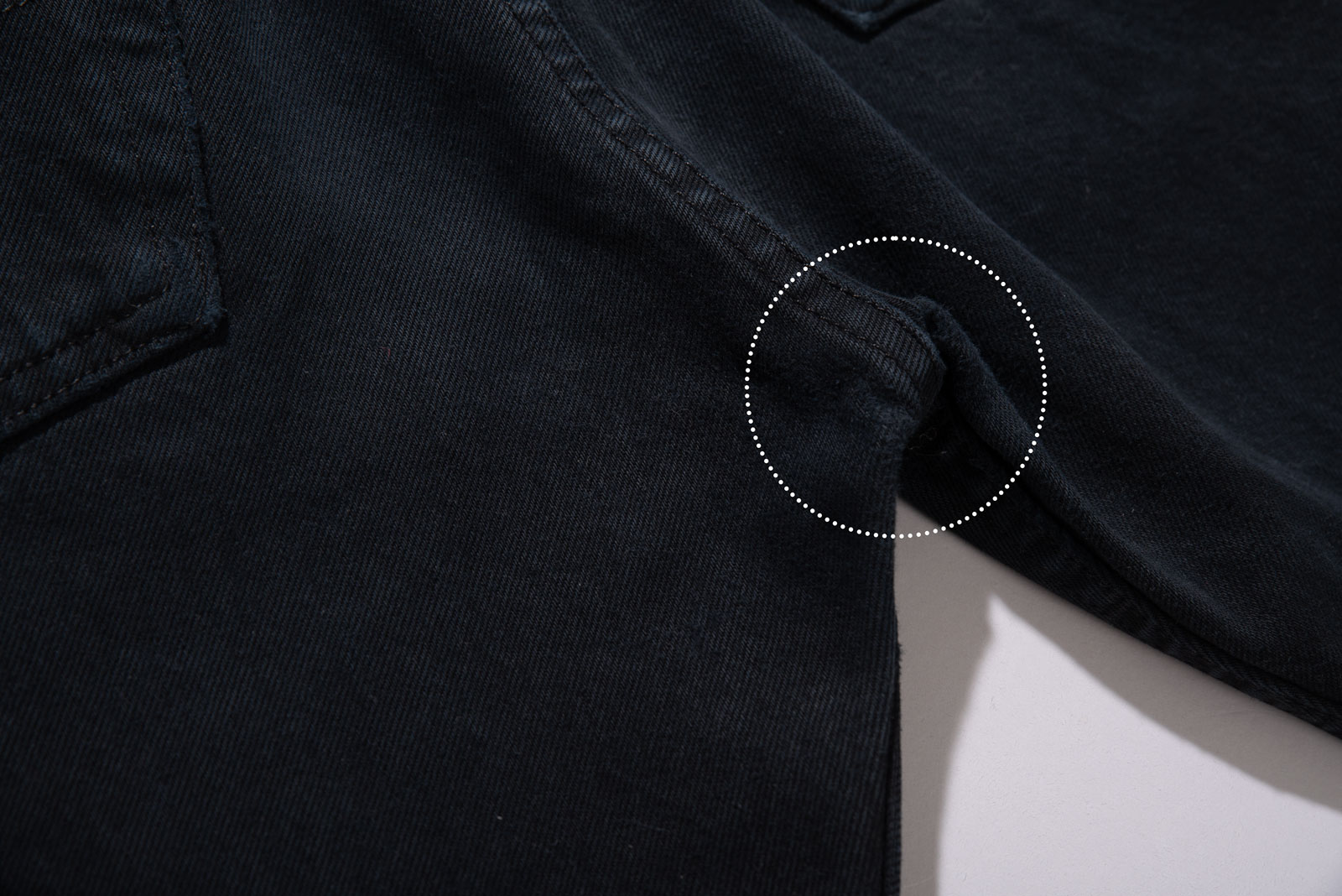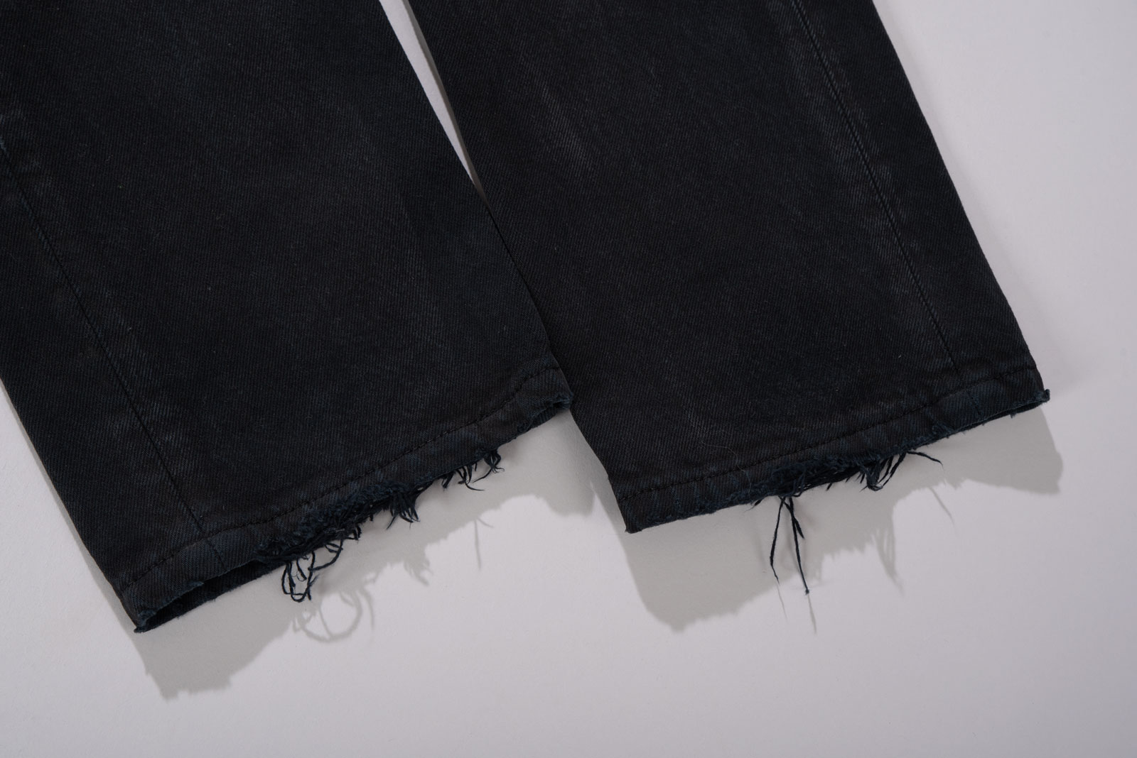 501 고유의 버튼 플라이와 5포켓, 리벳 디테일은 실루엣을 단정하게 잡아주면서도 유럽 블랙 진 특유의 네이비 워시가 주는 개성, 90s 유럽산 501의 특징인 바싹 마른듯한 질감+미제 데님이 생각나는 러프한 원단감이 매력적이랍니다.