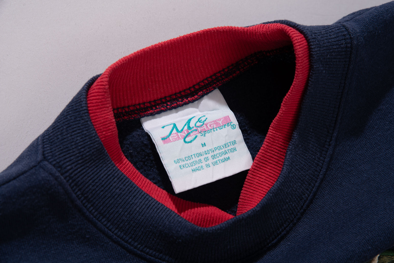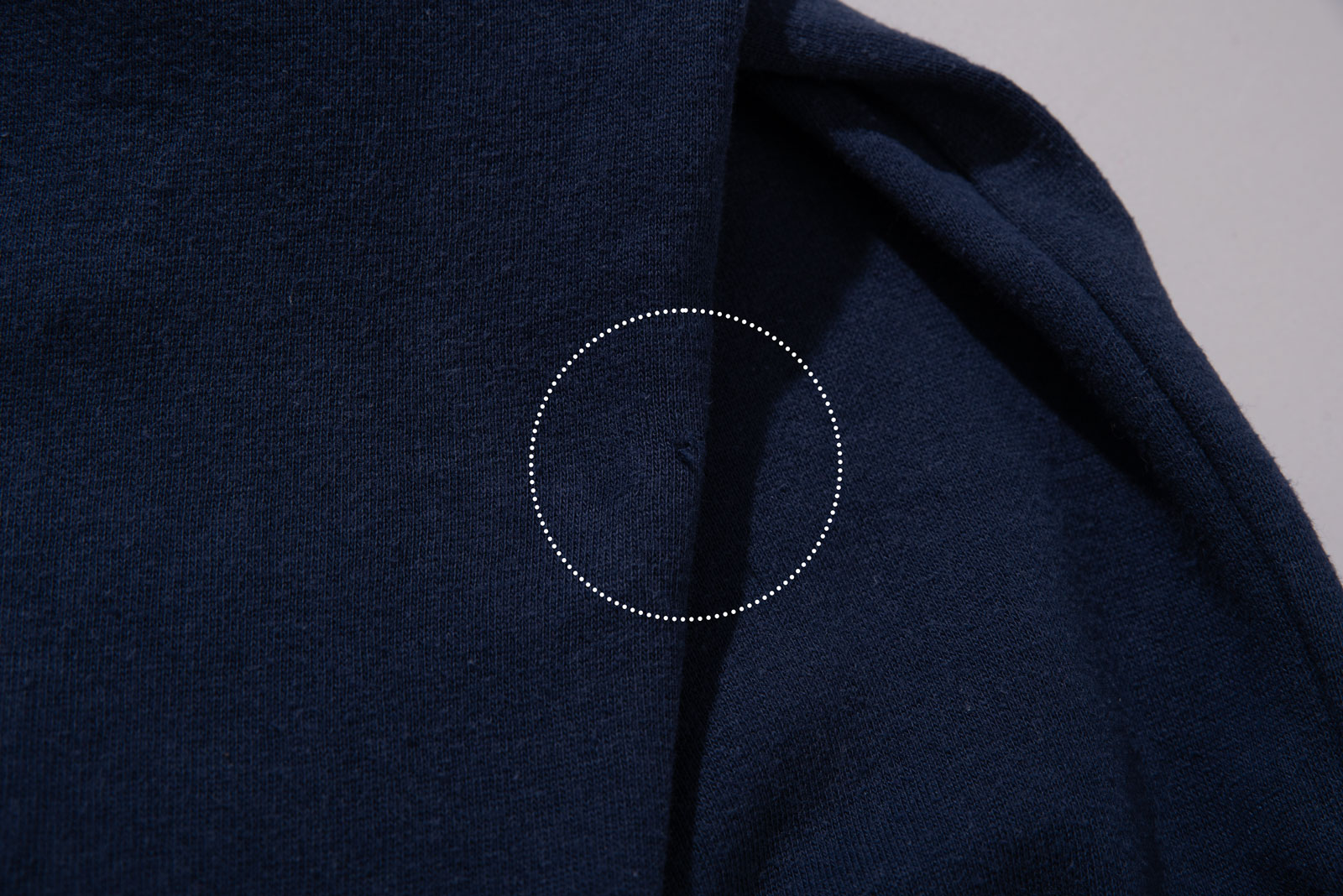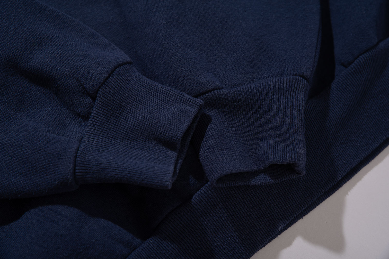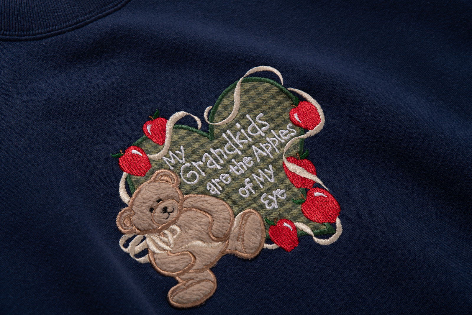 어디에나 착용하기 좋은 네이비 컬러에 배색 넥 라인과 전면 캐릭터, 귀여운 자수가 돋보이는 피스인데요.